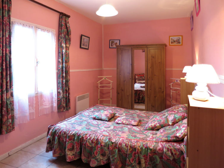 "Pontac-Gadet 1 (JDL100)", 3-Zimmer-Doppelhaushälfte 70 m2. Zweckmässig eingerichtet: Wohnzimmer mit offenem Kamin (nur Deko), Sat-TV. 1 Zimmer mit 1 Bett (80 cm, Länge 190 cm), 1 franz. Bett (140 cm, Länge 190 cm). 1 Zimmer mit 1 franz. Bett (140 cm, Länge 190 cm). Küche (Geschirrspüler, 4 Flammen, Toaster, Wasserkocher, Mikrowelle, Tiefkühler, elektrische Kaffeemaschine) mit Esstisch. Ausgang zur Terrasse. Dusche/WC. E-Heizung. Terrasse teilweise überdacht. Terrassenmöbel, Gartengrill, Liegestühle (4). Zur Verfügung: Waschmaschine, Bügeleisen. Internet (Wireless LAN, gratis). Bitte beachten: Nichtraucher-Haus. Rauchmelder.