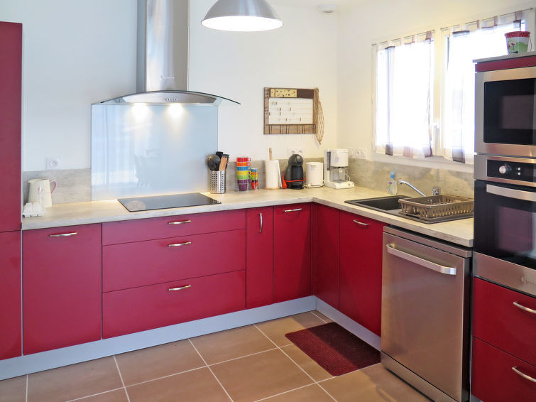 "Carraou (VSG140)", 4-Zimmer-Haus 95 m2. Hell, schön eingerichtet: Wohn-/Esszimmer mit Esstisch, Essecke und Sat-TV (Flachbildschirm), Stereoanlage. Ausgang zur Terrasse. 1 Zimmer mit 1 franz. Bett (140 cm, Länge 190 cm). 1 Zimmer mit 1 franz. Bett (160 cm, Länge 200 cm). 1 Kinderzimmer mit 1 Bett (90 cm, Länge 190 cm). Offene Küche (Backofen, Geschirrspüler, 4 Glaskeramikherd Platten, Toaster, Wasserkocher, Mikrowelle, Tiefkühler, elektrische Kaffeemaschine). Dusche, sep. WC. E-Heizung, Klimaanlage. Terrasse. Terrassenmöbel, Gartengrill (mobil), Liegestühle (4). Zur Verfügung: Waschmaschine, Bügeleisen, Kinderhochstuhl, Babybett (extra). Internet (Wireless LAN, gratis). Bitte beachten: Nichtraucher-Haus. Rauchmelder.