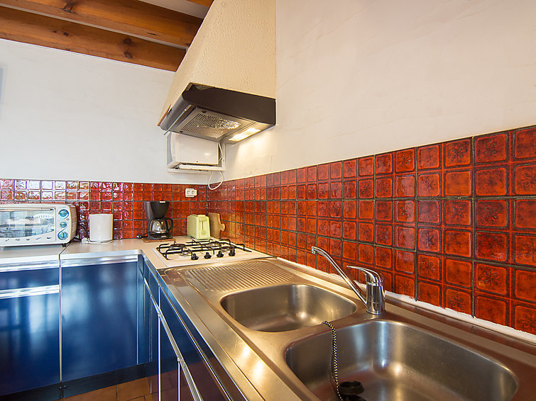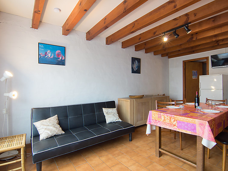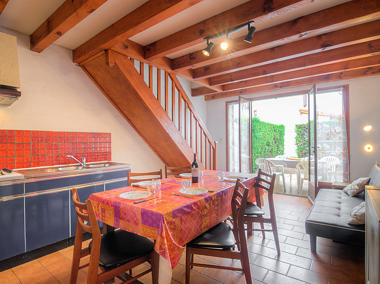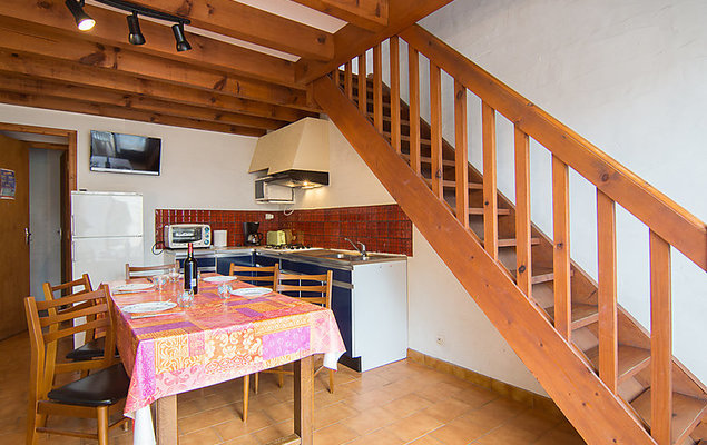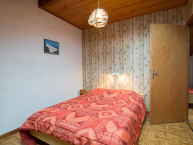 3-Zimmer-Reihenhaus 50 m2 auf 2 Stockwerken. Wohn-/Esszimmer mit TV und Internationale TV-Sender (Flachbildschirm). Ausgang zur Terrasse. Kochnische (4 Kochplatten, Mini-Backofen, Mikrowelle). Dusche, sep. WC. Obergeschoss: 1 abgeschrägtes Zimmer mit 1 franz. Bett (1 x 140 cm, Länge 190 cm). 1 abgeschrägtes Zimmer mit 1 Bett (90 cm, Länge 190 cm), 1 franz. Bett (1 x 140 cm, Länge 190 cm). Terrasse. Terrassenmöbel, Liegestühle (1). Zur Verfügung: Internet (Wireless LAN, gratis). Bitte beachten: Maximal 1 Haustier/Hund erlaubt. Rauchmelder.