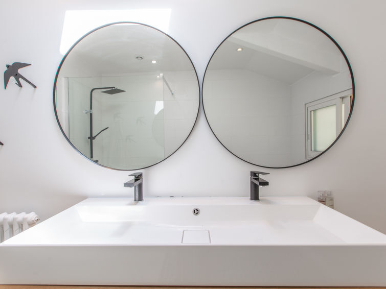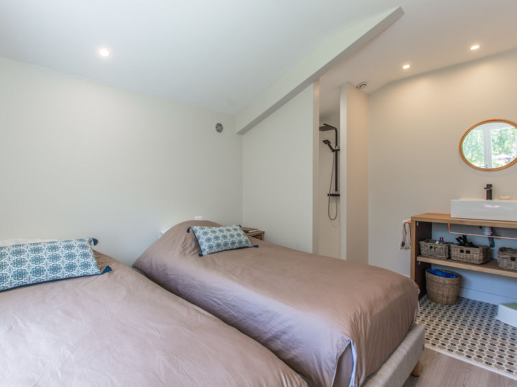 5-Zimmer-Villa 200 m2 auf 2 Stockwerken. Geräumig und hell, komfortabel und schön eingerichtet: grosses Wohn-/Esszimmer 70 m2 mit offenem Kamin und Esstisch. Ausgang zum Garten, zur Terrasse. Kleines Büro mit TV (Flachbildschirm). 2 Zimmer, jedes Zimmer mit 1 franz. Bett (180 cm, Länge 200 cm). Offene Küche (Backofen, Geschirrspüler, 3 Induktionskochplatten, Toaster, Wasserkocher, Mikrowelle, Tiefkühler, elektrische Kaffeemaschine, Kapseln für die Kaffeemaschine (Nespresso) extra) mit Esstisch. Bad/Dusche, sep. WC, Doppelwaschbecken. Obergeschoss: 2 Zimmer, jedes Zimmer mit 2 Betten (90 cm, Länge 200 cm), Waschbecken und Dusche. Grosse Galerie. Ausgang zum Balkon. Sep. WC. Heizung, Klimaanlage. 2 Balkone, Südwestlage und Nordostlage, 2 Terrassen teilweise überdacht, Südwestlage und Nordostlage. Terrassenmöbel, Gartengrill (mobil), Liegestühle (8). Schöne Sicht auf den See, das Schwimmbad und den Wald. Zur Verfügung: Waschmaschine, Wäschetrockner, Bügeleisen, Kinderhochstuhl, Babybett, Haartrockner. Internet (Wireless LAN, gratis). Bitte beachten: Nichtraucher-Haus. Rauchmelder. Anstelle eines abgeschlossenen Schlafzimmers befinden sich manche Schlafplätze in einem offenen Bereich (Galerie, Nische etc.). Inserat einer Privatperson nach Artikel 155, IV, CGI.