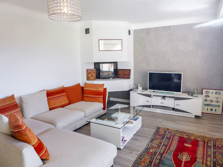 4-Zimmer-Wohnung 85 m2 auf 2 Stockwerken. Komfortabel und modern eingerichtet: Esszimmer. Wohnzimmer mit TV und Flachbildschirm. Ausgang Richtung Süden. 1 Zimmer mit 1 x 2 Etagenbetten (90 cm, Länge 190 cm). 1 Zimmer mit 1 franz. Bett (1 x 140 cm, Länge 190 cm). 1 Zimmer mit 1 franz. Bett (1 x 140 cm, Länge 190 cm). Ausgang zum Balkon. Offene Küche (Backofen, Geschirrspüler, 4 Glaskeramikherd Platten, Mikrowelle, elektrische Kaffeemaschine). Bad/WC, Doppelwaschbecken. E-Heizung. Unteres Geschoss: Eingang mit sep. WC. Grosse Terrasse 15 m2. Terrassenmöbel, Gartengrill. Zur Verfügung: Waschmaschine, Bügeleisen, Haartrockner. Internet (Wireless LAN, gratis). Parkplatz (eingezäunt). Bitte beachten: 1 Haustier/Hund erlaubt. Rauchmelder. 6402400023163