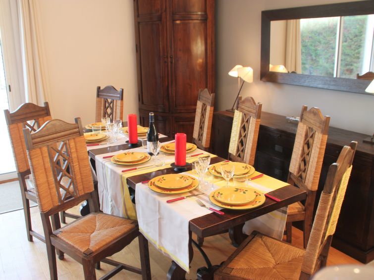 6-Zimmer-Villa 220 m2 auf 2 Stockwerken. Geräumig und hell, komfortabel und geschmackvoll eingerichtet: Wohn-/Esszimmer mit offenem Kamin und TV (Flachbildschirm), DVD. Ausgang zur Terrasse, zum Schwimmbad, Richtung Westen. 1 Zimmer mit 1 franz. Bett (90 cm, Länge 190 cm). Küche (Backofen, Geschirrspüler, 4 Glaskeramikherd Platten, Mikrowelle, Tiefkühler, elektrische Kaffeemaschine, Kapseln für die Kaffeemaschine (nespresso) extra) mit Durchreiche. Bad/Dusche, sep. WC. Obergeschoss: 1 Zimmer mit 1 franz. Bett (140 cm, Länge 190 cm). 1 Zimmer mit 1 franz. Bett (160 cm, Länge 200 cm), Bad/Dusche/WC. 1 abgeschrägtes Kinderzimmer mit 2 Betten (90 cm, Länge 190 cm). 1 Zimmer mit 1 franz. Bett (140 cm, Länge 190 cm). Dusche/WC. G-Heizung. Terrassenmöbel, Gartengrill, Liegestühle. Zur Verfügung: Waschmaschine, Wäschetrockner. Internet (Wireless LAN, gratis). Parkplatz. Bitte beachten: Nichtraucher-Haus. Rauchmelder. 6402400023475