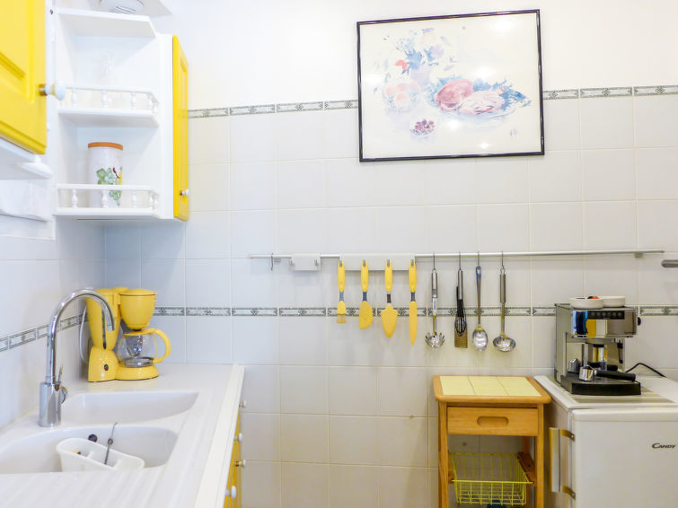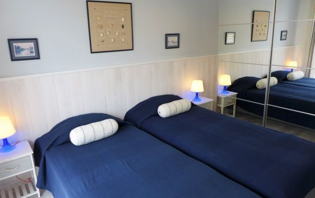 3-Zimmer-Wohnung 80 m2 im 1. Stock. Hell, vollständig renoviert im Jahre 2016, komfortabel und schön eingerichtet: Wohn-/Esszimmer mit 1 Doppeldiwanbett (140 cm, Länge 190 cm), TV, Stereoanlage und DVD. Ausgang zum Balkon, Richtung Westen. 1 Zimmer mit 1 franz. Bett (140 cm, Länge 190 cm), TV (Flachbildschirm). Ausgang zum Balkon. 1 Zimmer mit 2 Betten (90 cm, Länge 190 cm). Ausgang zum Balkon. Offene Küche (Backofen, Geschirrspüler, 3 Induktionskochplatten, Mikrowelle, elektrische Kaffeemaschine, Kapseln für die Kaffeemaschine (Tassimo) extra). Bad, sep. WC. E-Heizung. Grosse Terrasse 35 m2. Terrassenmöbel. Eingeschränkte Sicht auf das Meer. Zur Verfügung: Waschmaschine, Wäschetrockner, Bügeleisen. Internet (Wireless LAN, gratis). Garage. Bitte beachten: Nichtraucher-Unterkunft. Rauchmelder. 64122172085QN