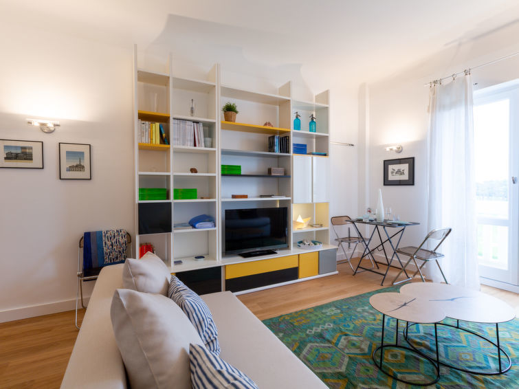 1-Zimmer-Studio 30 m2 im 3. Stock. Hell, vollständig renoviert im Jahre 2019, komfortabel und schön eingerichtet: Wohn-/Esszimmer mit 1 Diwanbett (90 cm, Länge 190 cm), 1 Doppeldiwanbett (1 x 160 cm, Länge 200 cm), TV (Flachbildschirm). Ausgang zum Balkon, Richtung Süden. Küche (Backofen, Geschirrspüler, 2 Induktionskochplatten, Mikrowelle, elektrische Kaffeemaschine, Kapseln für die Kaffeemaschine (Nespresso) extra). Dusche/WC. Kleiner Balkon. Schöne Sicht auf den Golfplatz. Zur Verfügung: Waschmaschine, Bügeleisen. Internet (Wireless LAN, gratis). Parkplatz Nr. 315. Bitte beachten: Rauchmelder. 64122182559RA