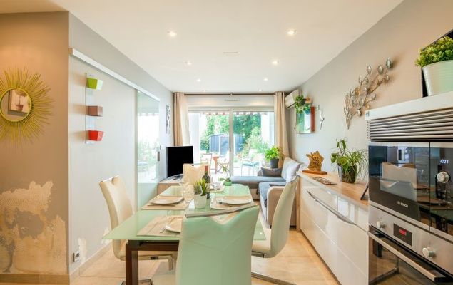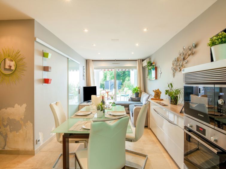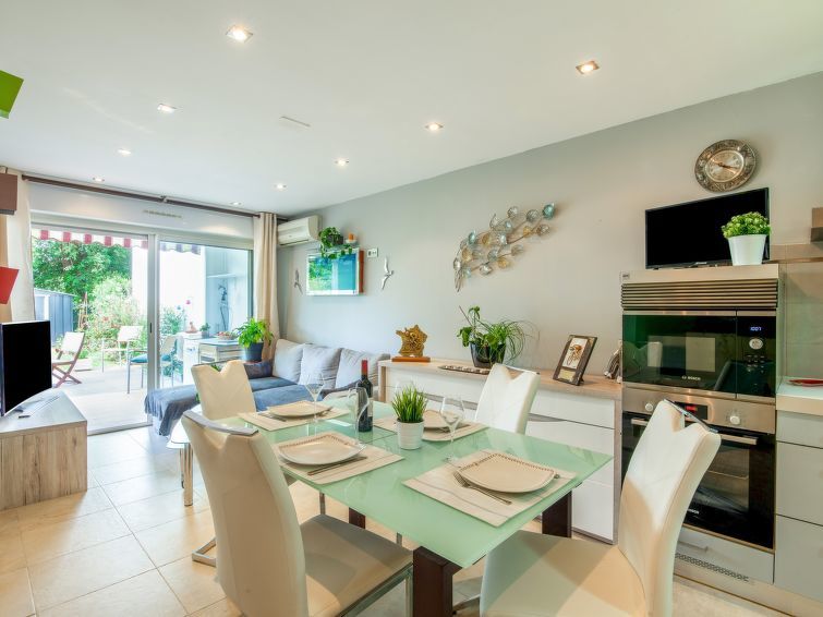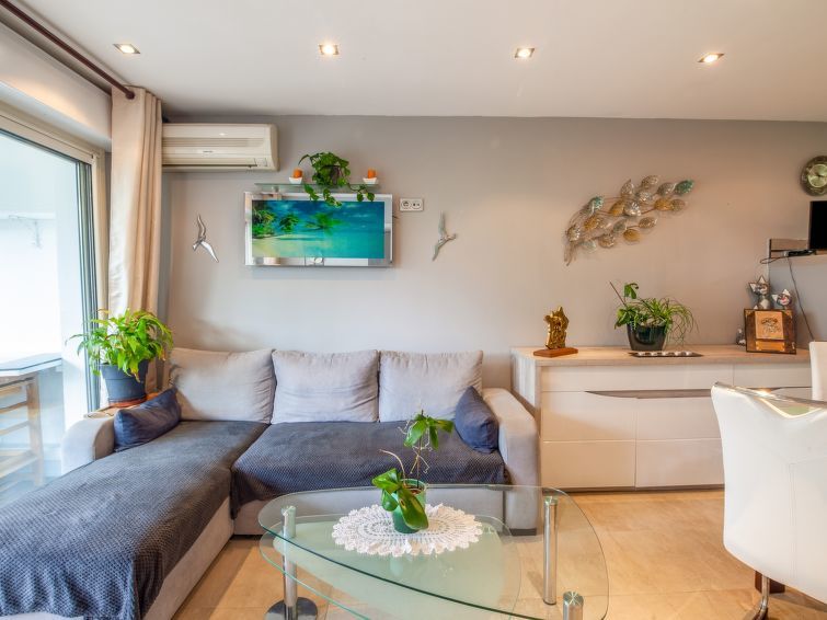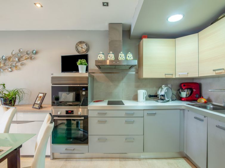 2-Zimmer-Wohnung 50 m2, im Erdgeschoss. Zweckmässig und komfortabel eingerichtet: Wohn-/Esszimmer mit 1 Doppeldiwanbett (140 cm, Länge 190 cm), TV (Flachbildschirm). Ausgang zum Garten. 1 Zimmer 16 m2 mit 1 franz. Bett (160 cm, Länge 200 cm). Offene Küche (Backofen, Geschirrspüler, 2 Induktionskochplatten, Toaster, Wasserkocher, elektrische Kaffeemaschine). Dusche/WC. Klimaanlage. Kleiner Garten 20 m2. Terrassenmöbel, Elektrogrill. Zur Verfügung: Waschmaschine, Bügeleisen, Haartrockner. Internet (Wireless LAN, gratis). Parkplatz Nr. 1 beim Haus. Bitte beachten: Rauchmelder. 642600017047C