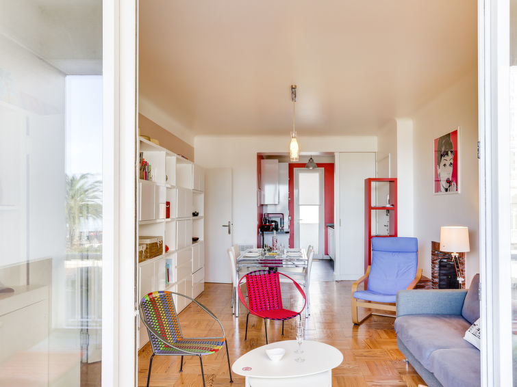 3-Zimmer-Wohnung 60 m2 im 1. Stock. Komfortabel und schön eingerichtet: Wohn-/Esszimmer mit TV (Flachbildschirm). Ausgang zum Balkon. 1 Zimmer mit 1 franz. Bett (1 x 140 cm, Länge 200 cm). 1 Zimmer mit 1 Doppeldiwanbett (1 x 140 cm, Länge 200 cm), 1 x 2 Etagenbetten (90 cm, Länge 200 cm), TV (Flachbildschirm). Offene Küche (Backofen, Geschirrspüler, 4 Glaskeramikherd Platten, Toaster, Wasserkocher, Mikrowelle, Tiefkühler, elektrische Kaffeemaschine). Dusche, sep. WC. E-Heizung. Balkon 5 m2. Balkonmöbel, Elektrogrill, Liegestühle (2). Sicht auf das Meer. Zur Verfügung: Waschmaschine, Bügeleisen, Haartrockner. Internet (Wireless LAN, gratis). Parkplatz Nr. 3. Bitte beachten: Rauchmelder. 6448300018663