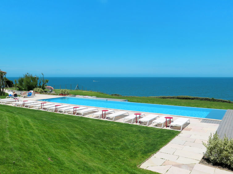 Schöne Residenz "La Réserve", renoviert im Jahre 2017. 44 Wohnungen in der Residenz. Im Ortsteil la Pointe Sainte Barbe, 2 km vom Zentrum von Saint Jean-de-Luz, 17 km vom Zentrum von Biarritz, am Hang, 1.5 km vom Meer. Zur Mitbenutzung: Grundstück 3 ha (eingezäunt), gepflegter Garten mit Rasen und Pflanzen, 2 Schwimmbäder beheizt (20 x 5 m, 100 - 180 cm tief, saisonale Verfügbarkeit: 16.Mar.-05.Nov.) mit Rollladenabdeckung. Aussendusche, Tennis, Tischtennis, Terrasse, Gartenmöbel. In der Anlage: Empfang, Restaurant, Bar, Wellnessbereich (extra), Waschmaschine, Wäschetrockner (zur Mitbenutzung, extra). Frühstück und Halbpension möglich (extra). Parkplatz (beschränkte Anzahl), Gemeinschaftsgarage (extra). Einkaufsgeschäft 2 km, Supermarkt 3.5 km, Sandstrand "Erromardie" 1.5 km. Golfplatz (18 Loch) 4 km. Bitte beachten: autofreie Ferienanlage. Das Foto ist nur ein Hausbeispiel.