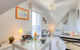 1-Zimmer-Studio 43 m2 im 4. Stock. Geräumig, abgeschrägt: Wohn-/Schlafzimmer mit 1 Diwanbett (90 cm, Länge 190 cm), 1 franz. Bett (140 cm, Länge 190 cm), TV (Flachbildschirm), elektrischem Rollladen. Kochnische (2 Kochplatten, Geschirrspüler, Toaster, Wasserkocher, Kombinationsmikrowelle). Dusche, sep. WC. E-Heizung. Zur Verfügung: Waschmaschine. Internet (Wireless LAN, gratis). Parkplatz. Bitte beachten: Nichtraucher-Unterkunft. 1 Haustier/Hund erlaubt. Rauchmelder.