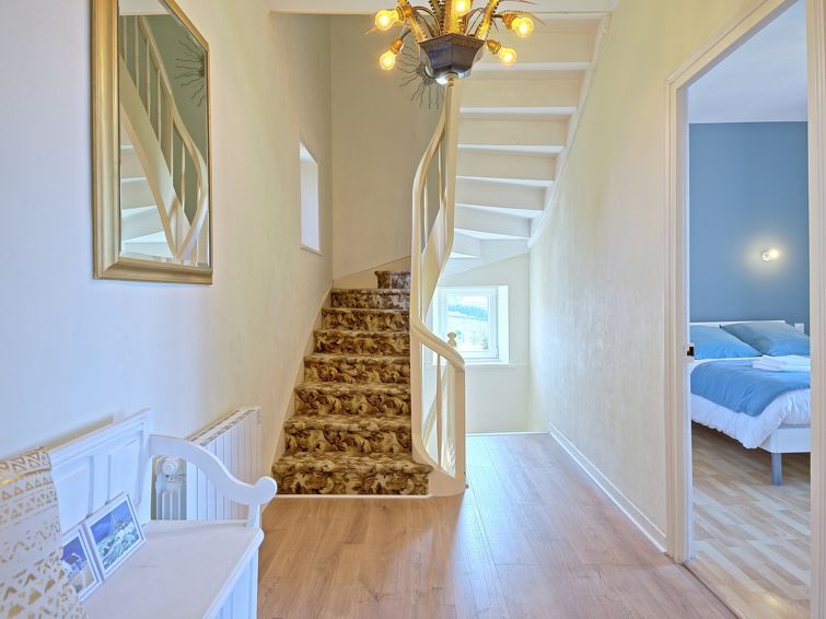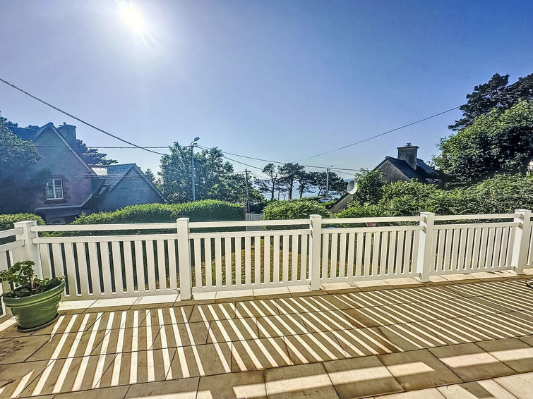 "Ty Poulpry", 5-Zimmer-Haus 130 m2 auf 3 Stockwerken. Geräumig, teilweise renoviert im Jahre 2024, komfortabel und schön eingerichtet: Wohn-/Esszimmer mit offenem Kamin (nur Deko), TV (Flachbildschirm). Ausgang zum Balkon, Richtung Westen. Küche (Backofen, Geschirrspüler, 3 Glaskeramikplatten, Toaster, Wasserkocher, Mikrowelle, Tiefkühler, elektrische Kaffeemaschine, Kapseln für die Kaffeemaschine (Senseo) extra) mit kleinem Esstisch. Sep. WC. Obergeschoss: 1 Zimmer mit 1 franz. Bett (160 cm, Länge 190 cm). 1 Zimmer mit 1 franz. Bett (140 cm, Länge 190 cm). Dusche/WC, Doppelwaschbecken. 2. Obergeschoss: 1 Zimmer mit 1 franz. Bett (140 cm, Länge 190 cm). 1 Zimmer mit 1 franz. Bett (2 x 80 cm, Länge 190 cm). Dusche/WC, Doppelwaschbecken. E-Heizung. Grosser Balkon 20 m2, Westlage, Terrasse 18 m2, Südlage und Ostlage. Terrassenmöbel, Gartengrill, Liegestühle (4). Schöne Sicht auf das Meer. Zur Verfügung: Waschmaschine, Bügeleisen, Babybett bis 2 Jahre, Haartrockner. Internet (Wireless LAN, gratis). Bitte beachten: Nichtraucher-Haus. Rauchmelder. Inserat einer Privatperson nach Artikel 155, IV, CGI.