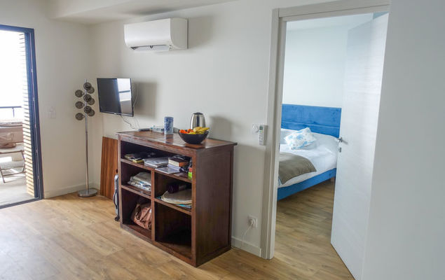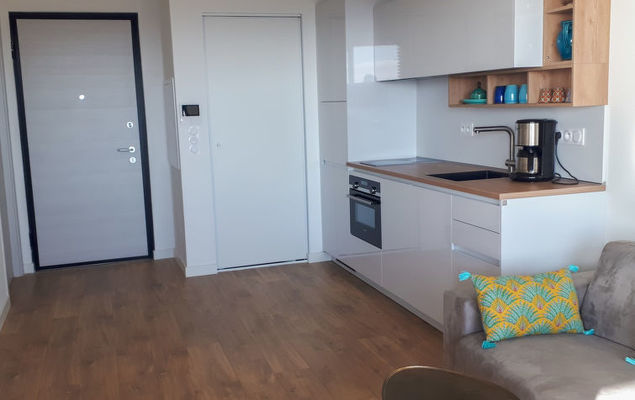2-Zimmer-Wohnung 40 m2. Geräumig und hell, komfortabel und gemütlich eingerichtet: Wohn-/Esszimmer mit 1 Doppeldiwanbett. Ausgang zur Terrasse. 1 Zimmer mit 1 franz. Bett (160 cm, Länge 200 cm). Ausgang zur Terrasse. Offene Küche (Backofen, Geschirrspüler, 2 Glaskeramikherd Platten, Toaster, Wasserkocher, Mikrowelle, elektrische Kaffeemaschine). Dusche/WC. Klimaanlage. Terrasse 16 m2, überdacht. Terrassenmöbel, Liegestühle (1), Sitzplatz. Sehr schöne Sicht auf das Meer und die Berge. Zur Verfügung: Waschmaschine. Internet (Wireless LAN). Bitte beachten: Nichtraucher-Unterkunft. Rauchmelder. Inserat einer Privatperson nach Artikel 155, IV, CGI.