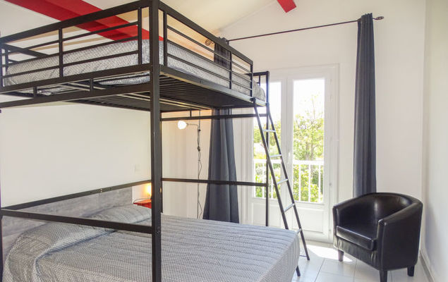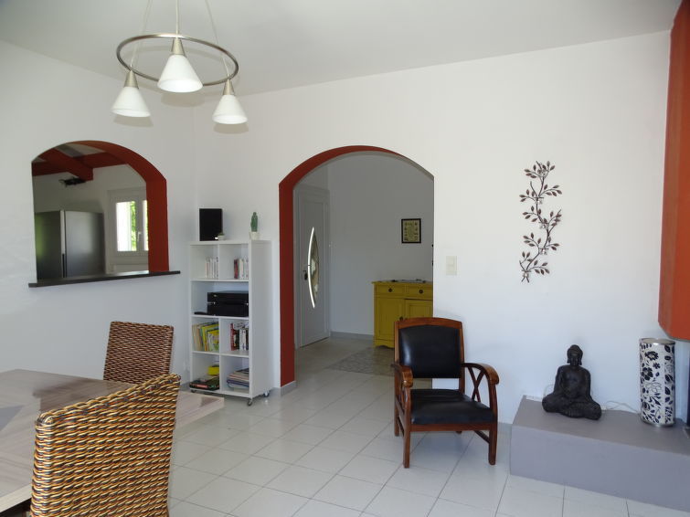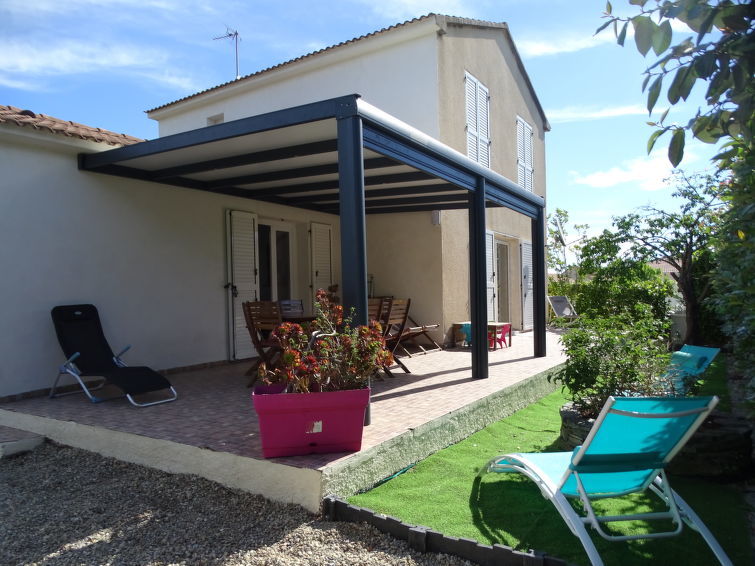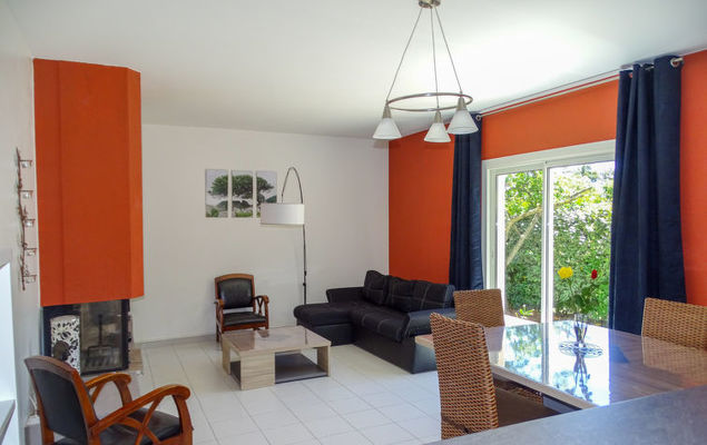 4-Zimmer-Haus 115 m2 auf 2 Stockwerken. Wohn-/Esszimmer mit offenem Kamin (nur Deko), TV (Flachbildschirm). 1 Zimmer mit 1 franz. Bett (160 cm, Länge 190 cm). Küche (Backofen, Geschirrspüler, 4 Induktionskochplatten, Wasserkocher, Mikrowelle, elektrische Kaffeemaschine). Dusche/WC. Obergeschoss: 1 Zimmer mit 1 franz. Bett (140 cm, Länge 190 cm). 1 Zimmer mit 1 x 2 Etagenbetten (140 cm, Länge 190 cm). Dusche/WC. Terrasse überdacht, Terrasse teilweise überdacht, Garten. Terrassenmöbel, Gartengrill. Zur Verfügung: Waschmaschine, Kinderhochstuhl, Babybett. Internet (Wireless LAN, gratis). Parkplatz (eingezäunt, 2 Autos). Bitte beachten: Nichtraucher-Haus. Rauchmelder.