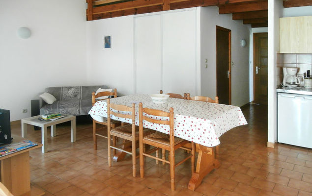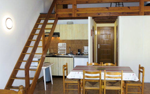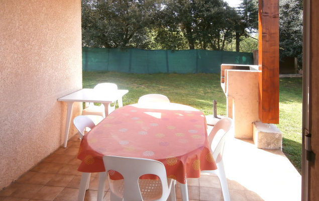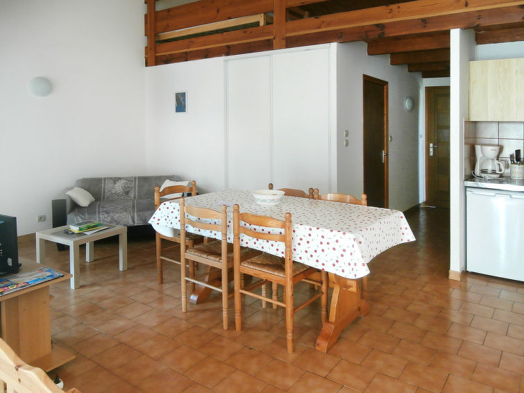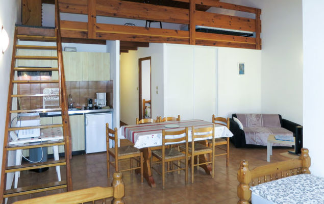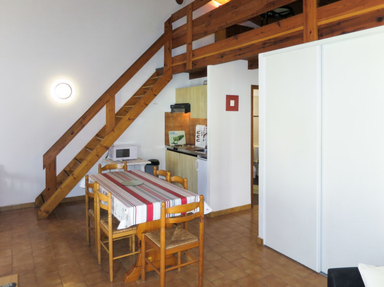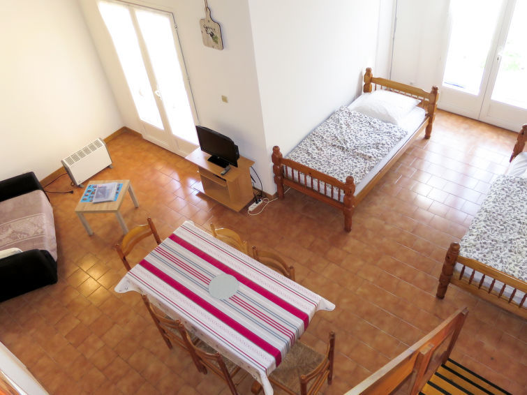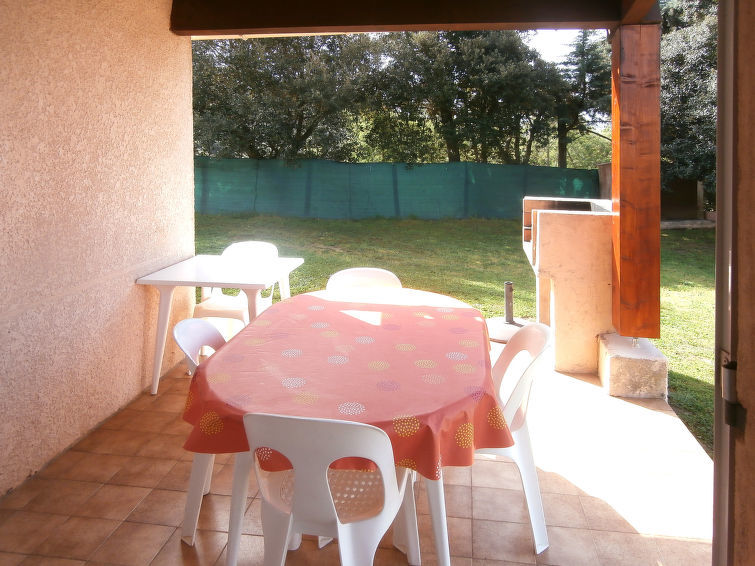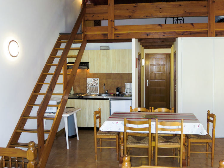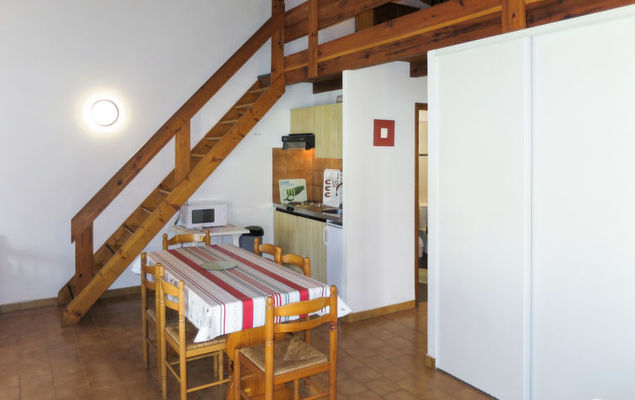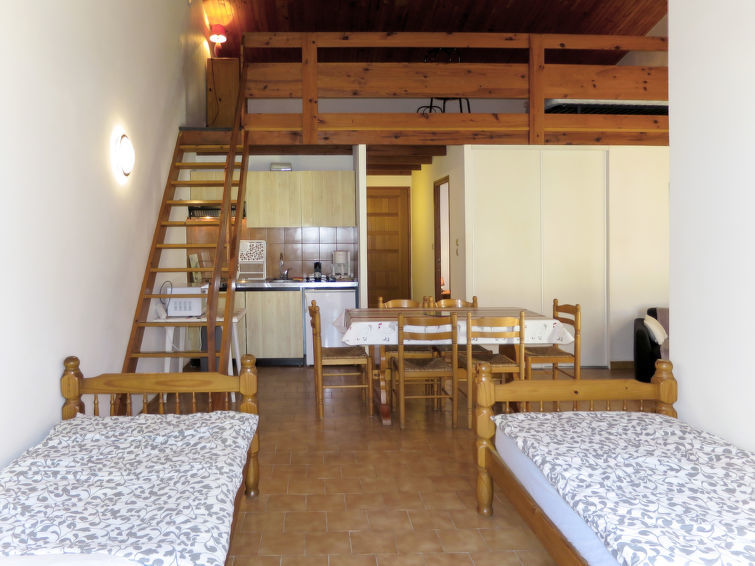 "La Pinede (SAG171)", 2-Zimmer-Doppelhaushälfte 65 m2 auf 2 Stockwerken. Zweckmässig und mit viel Holz eingerichtet: Wohn-/Schlafzimmer mit 2 Betten, Esstisch und Sat-TV. 1 Zimmer mit 1 franz. Bett. Kochnische (2 Kochplatten, Toaster, Wasserkocher, Mikrowelle, Tiefkühler, Grill, elektrische Kaffeemaschine). Dusche/WC. Obergeschoss: offene Galerie mit 2 Betten. Terrasse 15 m2 teilweise überdacht. Terrassenmöbel, Gartengrill. Bitte beachten: Nichtraucher-Unterkunft. Rauchmelder.