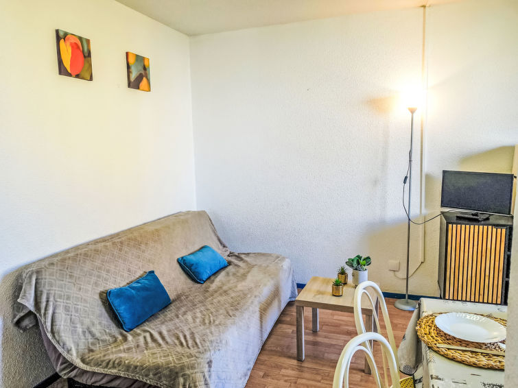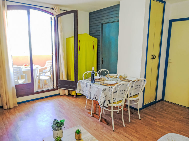 Residenz "Pleine Vue sur Mer". 400 m vom Meer, Strasse zu überqueren. Zur Mitbenutzung: Tennis (15.Jun. - 15.Sep.) (extra). Einkaufsgeschäft, Lebensmittelgeschäft 300 m, Restaurant, Bar 600 m, Bushaltestelle 500 m, Tauchzentrum 800 m. Sporthafen 800 m, Reitstall 4.4 km. Nahe gelegene Sehenswürdigkeiten: Réserve Africaine de Sigean 36 km, Cité de Carcassonne 78 km, Espace balnéoludique de Gruissan 11 km. Die Schlüsselübergabe findet bei der Agentur Interhome in Narbonne Plage statt, 3 km. Die Residenz ist eine Reihe von 3-stöckigen Gebäuden, die auf einer kleinen Klippe mit Blick auf den Hafen am Eingang des Resorts stehen.