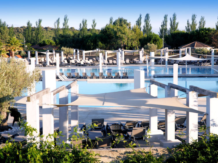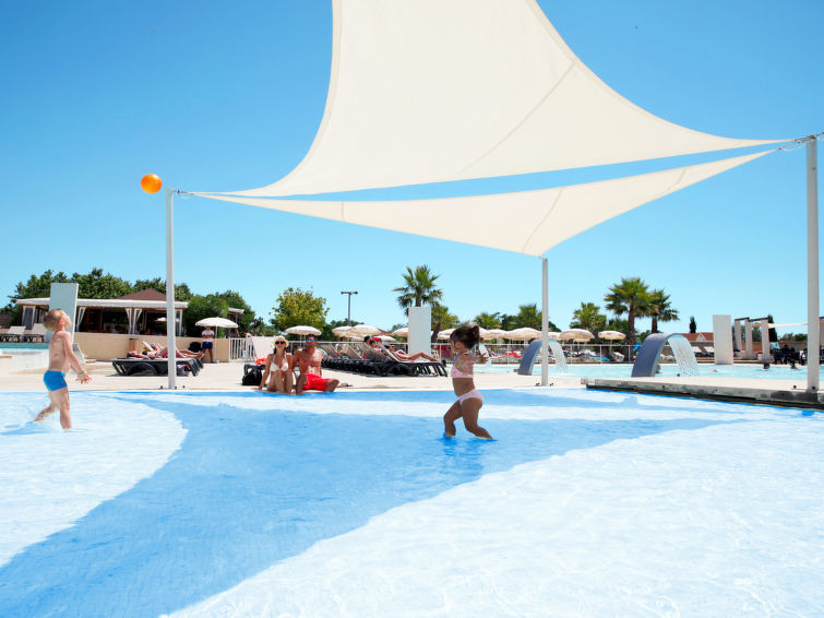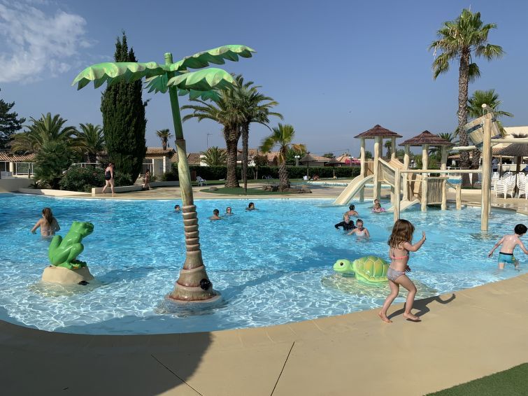 Grosse, kinderfreundliche Ferienanlage "Domaine de la Dragonnière". 780 Häuser in der Residenz. 6 km vom Zentrum von Vias, 2 km vom Zentrum von Portiragnes, 6 km vom Zentrum von Portiragnes-Plage, 6 km vom Meer, im Grünen. Zur Mitbenutzung: Grundstück 30 ha, 3 Schwimmbäder, Hallenbad beheizt (100 m2, 50 - 200 cm tief, saisonale Verfügbarkeit: 12.Jun.-12.Sep.). Kinderbecken, Rutschbahn, Sprudelbad, Basketball, Boccia, Beachvolleyball, Kinderspielplatz. In der Anlage: Empfang, Restaurant, Bar, Bistro, Sauna (extra). Massage (extra). Dampfbad, Einkaufsmöglichkeit, Kiosk, Waschmaschine (zur Mitbenutzung, extra). Frühstück und Halbpension möglich (extra). Parkplatz auf dem Grundstück, öffentliche Parkplätze extra. Einkaufsgeschäft 2.5 km, Sandstrand 6 km. Bitte beachten: Animation in der Saison. Kinderbetreuung (extra). Hauptstrasse in der Nähe. Flugplatz in der Nähe. Das Foto ist nur ein Hausbeispiel. Die Mietobjekte können sich in Wohnfläche, Raumaufteilung, Ausstattung und Einrichtung unterscheiden. Im zentralen Bereich ca. 3.000m² große Poollandschaft, die mehrere Pools und Kinderbecken inkl. Rutschen und über 6000m² Sandstränden bietet (einige dieser Einrichtungen sind nur in der Hochsaison geöffnet).
