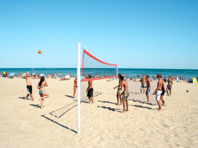 Kinderfreundliche Ferienanlage "La Grenadine", auf 2 Stockwerken, Baujahr 2013. 90 Häuser in der Residenz. 1.8 km vom Zentrum von Marseillan-Plage, am Ortsrand, 8 km vom Zentrum von Cap d'Agde, 32 km vom Zentrum von Béziers, 200 m vom Meer. Zur Mitbenutzung: Grundstück (eingezäunt), Schwimmbad beheizt (16 x 8 m, saisonale Verfügbarkeit: 01.Mai.-15.Okt.). WC im Poolbereich, Kinderbecken, Aussendusche, Tischtennis, Boccia, Kinderspielplatz. In der Anlage: Empfang, Bar, Bistro, Sauna (extra). Fitnessraum, Dampfbad (extra). Waschmaschine, Wäschetrockner (zur Mitbenutzung, extra). Brötchenservice. Treppenweg (3 Stufen) bis zum Haus. Parkplatz. Einkaufsgeschäft 1.8 km, Supermarkt 7 km, Sandstrand 200 m. Jacht-Hafen 1 km. Bitte beachten: autofreie Ferienanlage. Geeignet für Familien. Das Foto ist nur ein Hausbeispiel. Die Mietobjekte können sich in Wohnfläche, Raumaufteilung, Ausstattung und Einrichtung unterscheiden.