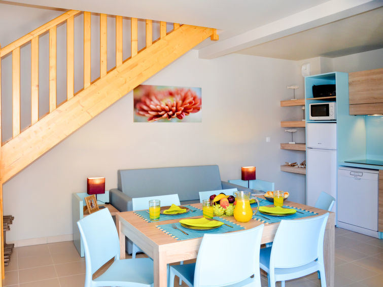 "La Grenadine (MPE122)", 3-Zimmer-Reihenhaus 43 m2 auf 2 Stockwerken. Zweckmässig und modern eingerichtet: Wohn-/Schlafzimmer mit 1 Doppeldiwanbett, Esstisch, TV mietbar und Klimaanlage. Kochnische (Geschirrspüler, 4 Glaskeramikherd Platten, Toaster, Wasserkocher, Mikrowelle, Tiefkühler, elektrische Kaffeemaschine). Dusche/WC. Obergeschoss: 1 Zimmer mit 1 franz. Bett. 1 Zimmer mit 2 Betten (80 cm). Sep. WC. E-Heizung. Terrasse überdacht. Terrassenmöbel. Zur Verfügung: Kinderhochstuhl, Babybett (extra). Internet (Wireless LAN, extra). Bitte beachten: Nichtraucher-Unterkunft. Maximal 2 Haustiere/Hunde erlaubt. Rauchmelder. Bedingt durch das Coronavirus (COVID-19) ergreift diese Unterkunft Maßnahmen, um die Sicherheit der Gäste und Mitarbeiter zu gewährleisten. Einige Services und Einrichtungen können daher nur eingeschränkt bzw. teilweise auch gar nicht nutzbar sein.