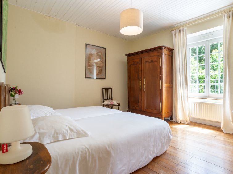 "La Haute Gilberdière (SIY400)", 3-Zimmer-Doppelhaushälfte 90 m2 auf 2 Stockwerken. Rustikal und mit viel Holz eingerichtet: Wohn-/Esszimmer mit offenem Kamin (nur Deko), Esstisch, Sat-TV und Radio. Kochnische (Geschirrspüler, 4 Glaskeramikherd Platten, Wasserkocher, Mikrowelle, elektrische Kaffeemaschine). Obergeschoss: 1 Zimmer mit 1 franz. Bett. 1 Zimmer mit 2 Betten. Bad, sep. WC. Ölheizung. Parkettböden. Garten, Rasen 500 m2. Terrassenmöbel. Zur Verfügung: Internet (Wireless LAN, gratis). Bitte beachten: Nichtraucher-Haus. Rauchmelder.
