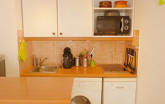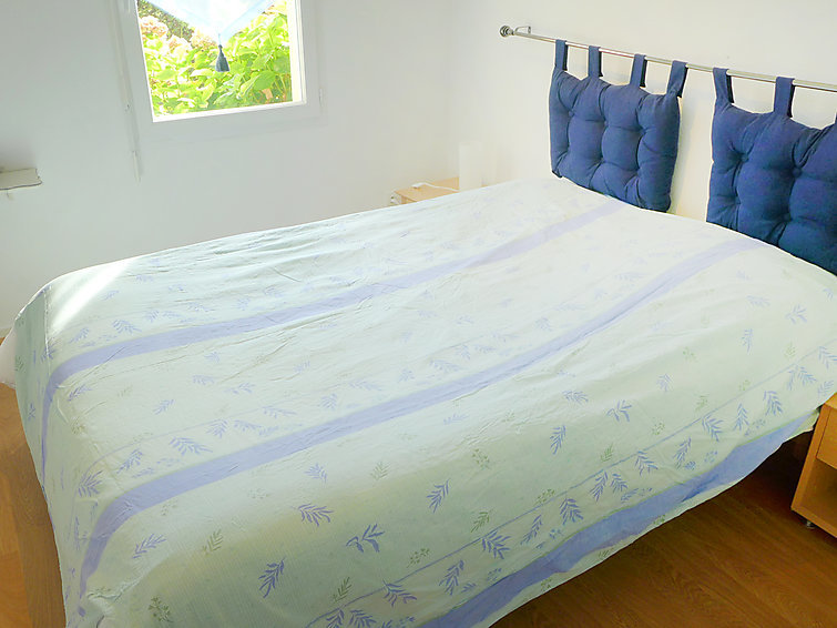 "Hortensia", 3-Zimmer-Wohnung 55 m2, im Erdgeschoss, Südwestlage. Wohn-/Esszimmer mit 1 Doppeldiwanbett (140 cm, Länge 190 cm), TV (Flachbildschirm), Stereoanlage, DVD und elektrischem Rollladen. Ausgang zum Garten. 1 Zimmer mit 1 Doppelbett (140 cm, Länge 190 cm), elektrischem Rollladen. 1 Zimmer mit 2 Betten (90 cm, Länge 190 cm), elektrischem Rollladen. Ausgang zum Garten. Kochnische (Geschirrspüler, 2 Induktionskochplatten, Toaster, Wasserkocher, Tiefkühler, elektrische Kaffeemaschine, Kapseln für die Kaffeemaschine (Tassimo) extra, Kombinationsmikrowelle) mit Bar. Dusche, sep. WC. E-Heizung. Parkettböden. Garten 42 m2. Terrassenmöbel, Liegestühle (3). Zur Verfügung: Waschmaschine, Bügeleisen, Haartrockner. Internet (Wireless LAN, gratis). Bitte beachten: Nichtraucher-Unterkunft, kein Parkplatz. Rauchmelder.
