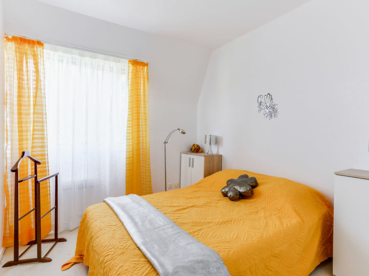 2-Zimmer-Wohnung 40 m2 im 2. Stock, Nordwestlage. Wohn-/Esszimmer mit 1 Doppeldiwanbett (140 cm, Länge 190 cm), TV (Flachbildschirm), DVD. Ausgang zum Balkon. 1 Zimmer mit 1 franz. Bett (140 cm, Länge 190 cm). Kochnische (4 Kochplatten, Backofen, Geschirrspüler, Mikrowelle, elektrische Kaffeemaschine). Bad, sep. WC. E-Heizung. Parkettböden, Teppichboden. Balkon 3 m2. Balkonmöbel. Zur Verfügung: Waschmaschine, Bügeleisen. Internet (Wireless LAN, extra). Parkplatz Nr. 22. Bitte beachten: 1 Haustier/Hund erlaubt. Rauchmelder.