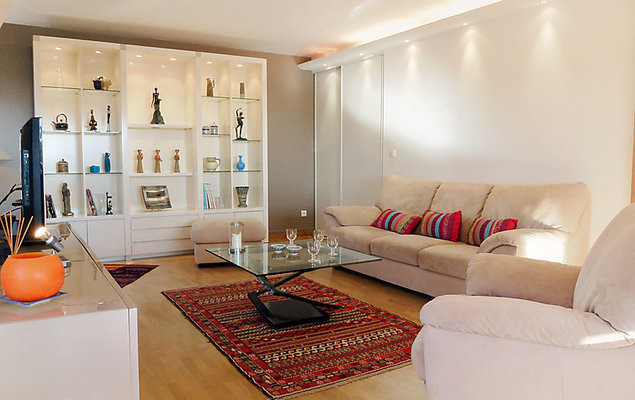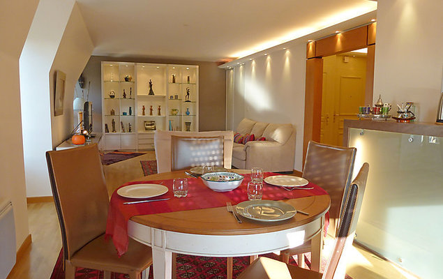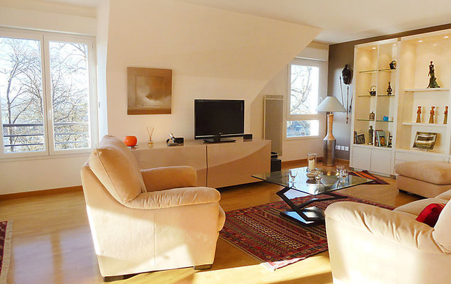 3-Zimmer-Wohnung 80 m2 im 4. Stock. Sehr komfortabel und geschmackvoll eingerichtet: Eingang mit sep. WC. Wohn-/Esszimmer mit TV (Flachbildschirm). Ausgang zur Terrasse. 2 Zimmer mit Panoramafenster, jedes Zimmer mit 1 franz. Bett (1 x 160 cm, Länge 200 cm). Ausgang zur Terrasse. Offene Küche (Backofen, Geschirrspüler, 3 Induktionskochplatten, Toaster, Wasserkocher, Mikrowelle, Tiefkühler, elektrische Kaffeemaschine). Dusche, sep. WC, Doppelwaschbecken. Grosse Terrasse 37 m2. Terrassenmöbel, Gartengrill. Sehr schöne Panoramasicht auf die Landschaft. Zur Verfügung: Waschmaschine, Wäschetrockner. Internet (Wireless LAN, gratis). Parkplatz (überdacht). Bitte beachten: Nichtraucher-Unterkunft. Rauchmelder.