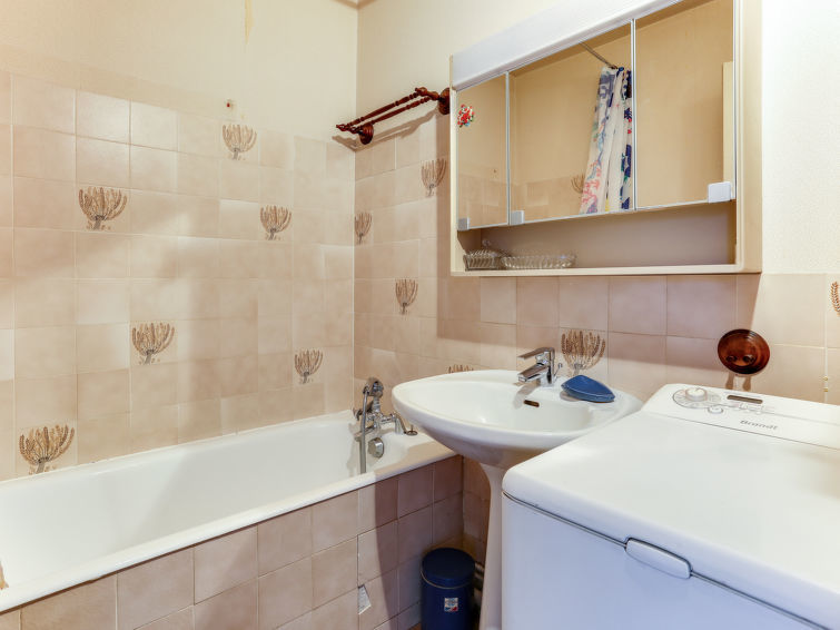 3-Zimmer-Wohnung 70 m2 im 6. Stock. Geräumig und hell: grosser Eingang. Wohn-/Esszimmer mit TV (Flachbildschirm). Ausgang zum Balkon, Richtung Westen. 1 Zimmer mit 1 franz. Bett (1 x 140 cm, Länge 190 cm). 1 Zimmer mit 2 Betten (80 cm, Länge 190 cm). Kleine Küche (4 Kochplatten, Backofen, Geschirrspüler, Toaster, Wasserkocher, Mikrowelle, elektrische Kaffeemaschine). Bad, Dusche, sep. WC. G-Heizung. Schöne Panoramasicht auf die Landschaft. Zur Verfügung: Waschmaschine. Internet (Wireless LAN, gratis). Bitte beachten: Nichtraucher-Unterkunft. Rauchmelder.