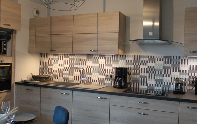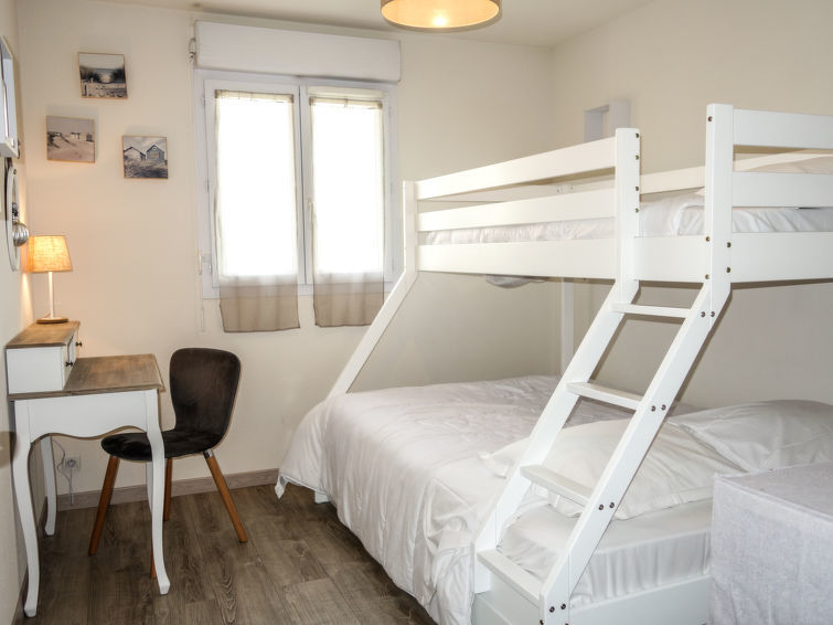 3-Zimmer-Wohnung 48 m2 im 2. Stock. Komfortabel eingerichtet: Eingang. Wohn-/Esszimmer mit TV (Flachbildschirm). Ausgang zum Balkon, Richtung Süden und Richtung Osten. 1 Zimmer mit 1 x 1 Etagenbetten (90 cm, Länge 190 cm), 1 franz. Bett (1 x 140 cm, Länge 190 cm). 1 Zimmer mit 1 franz. Bett (1 x 160 cm, Länge 200 cm). Offene Küche (Backofen, Geschirrspüler, 4 Induktionskochplatten, Toaster, Wasserkocher, Mikrowelle, Tiefkühler, elektrische Kaffeemaschine). Dusche/WC, sep. WC. Kleiner Balkon 4 m2. Balkonmöbel. Fernsicht auf die Ortschaft. Zur Verfügung: Waschmaschine. Internet (Wireless LAN, gratis). Parkplatz. Bitte beachten: Nichtraucher-Unterkunft. Rauchmelder.