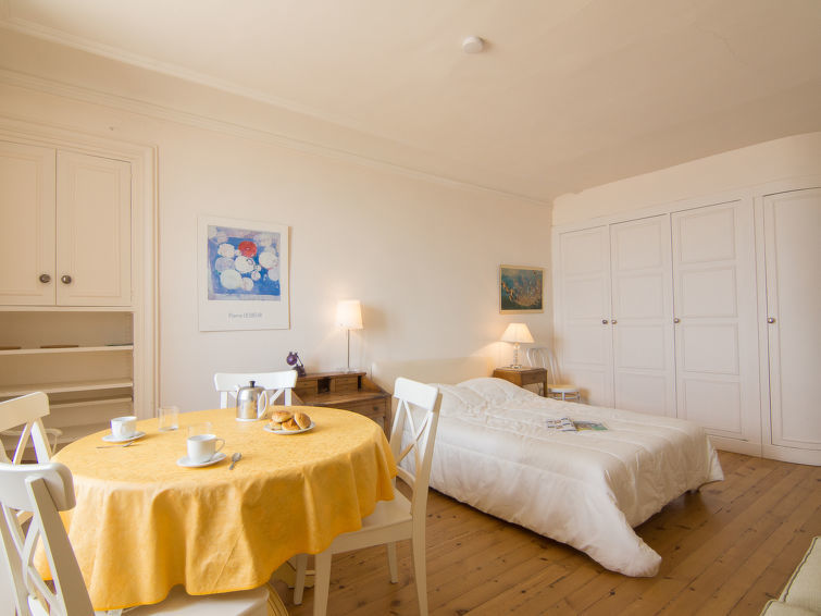 1-Zimmer-Studio 30 m2 im 3. Stock. Wohn-/Esszimmer mit 1 franz. Bett (140 cm), TV (Flachbildschirm). Küche (2 Kochplatten, Backofen, Geschirrspüler, Toaster, Wasserkocher, Mikrowelle, elektrische Kaffeemaschine). Bad/WC. Sehr schöne Sicht auf das Meer. Zur Verfügung: Internet (Wireless LAN, gratis). Parkplatz. Bitte beachten: Nichtraucher-Unterkunft. Rauchmelder. Inserat einer Privatperson nach Artikel 155, IV, CGI.