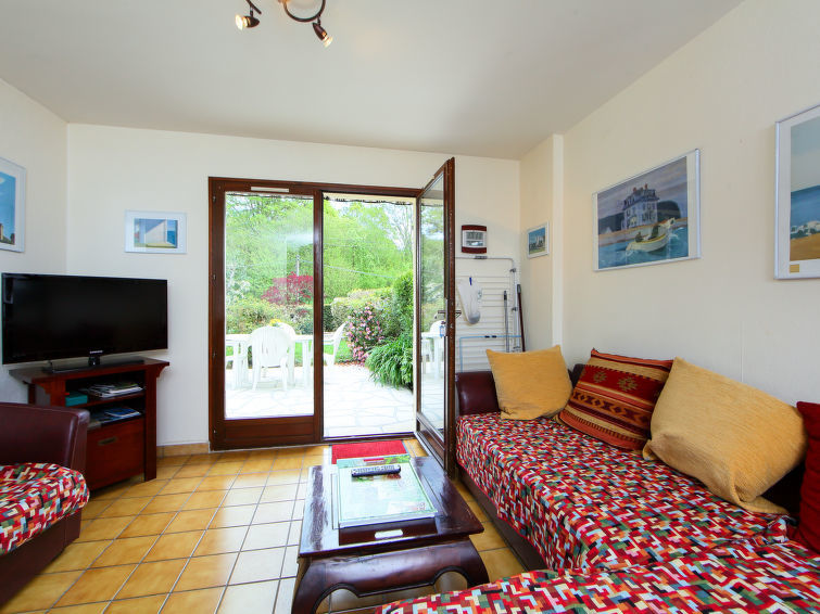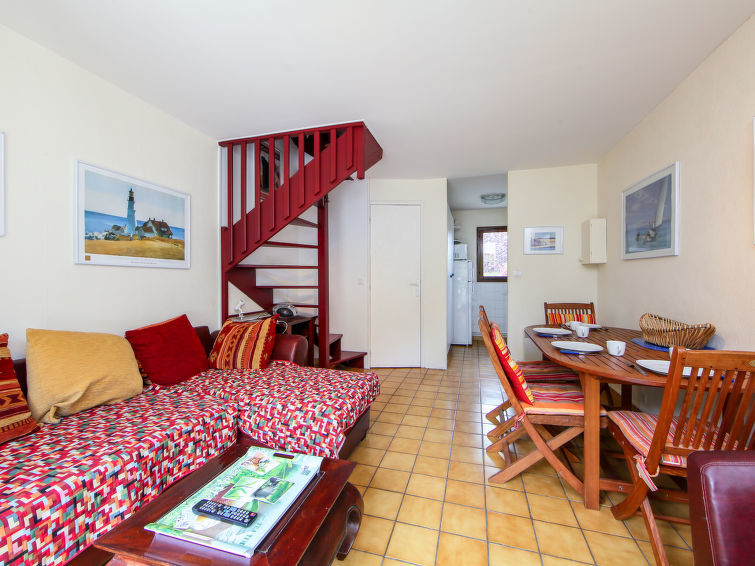 3-Zimmer-Reihenhaus 40 m2 auf 2 Stockwerken. Wohn-/Esszimmer mit 1 Diwanbett (130 cm, Länge 190 cm), TV (Flachbildschirm). Ausgang zum Garten, zur Terrasse. Offene Küche (4 Kochplatten, Mini-Backofen, Toaster, Wasserkocher, Mikrowelle, Tiefkühler, elektrische Kaffeemaschine). Dusche/WC. Obergeschoss: 1 Zimmer mit 1 franz. Bett (2 x 90 cm, Länge 190 cm), TV (Flachbildschirm). 1 Zimmer mit 1 Bett (90 cm, Länge 190 cm). E-Heizung. Garten 300 m2. Terrassenmöbel, Liegestühle (2). Zur Verfügung: Waschmaschine, Bügeleisen. Internet (Wireless LAN, extra). Parkplatz Nr. 37. Bitte beachten: Maximal 1 Haustier/Hund erlaubt. Rauchmelder. BEACHTEN SIE: Bach ohne Schutzvorrichtung in der Nähe des Gartens.