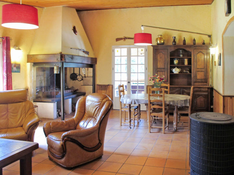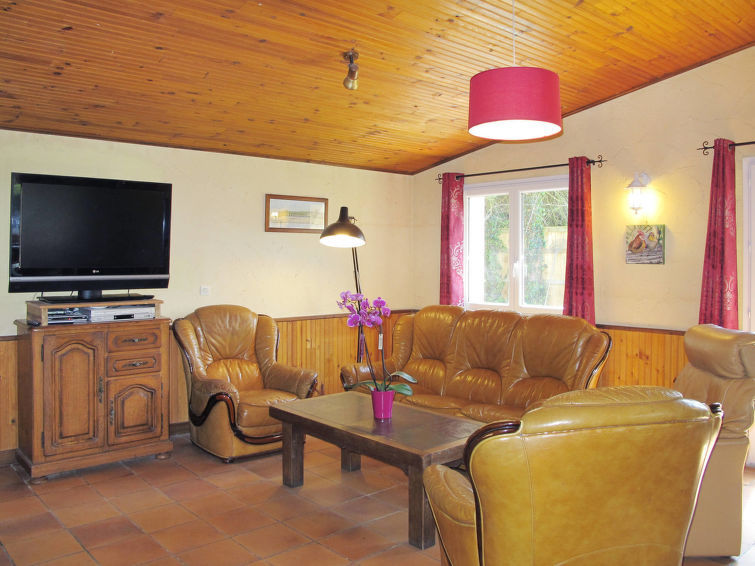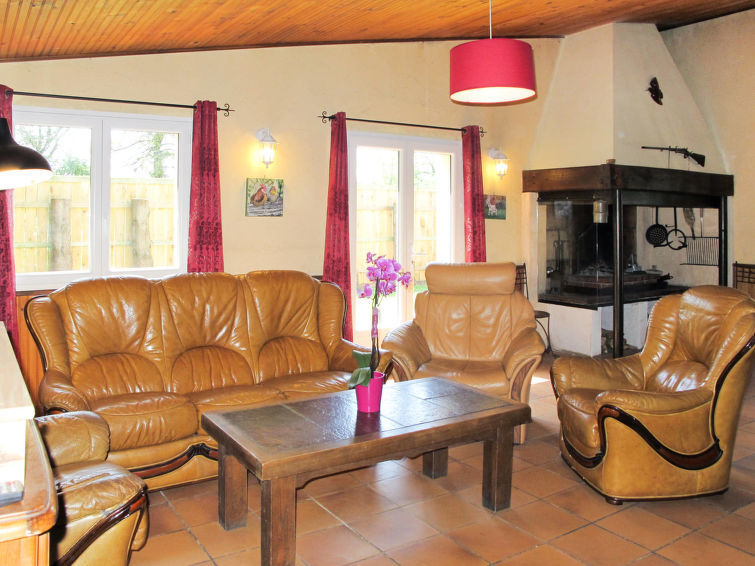 "Entre mer et campagne 3 (LMX401)", 5-Zimmer-Haus 190 m2. Rustikal und mit viel Holz eingerichtet: Wohn-/Esszimmer mit offenem Kamin, Esstisch, Bar, Sat-TV, Radio, Stereoanlage und DVD. Ausgang zur Terrasse. Billardzimmer mit Wintergarten. 2 Zimmer, jedes Zimmer mit 1 franz. Bett (160 cm). 1 Zimmer mit 1 franz. Bett. Ausgang zur Terrasse. Küche (1 Kochplatte, Backofen, Geschirrspüler, 3 Flammen, Toaster, Wasserkocher, Mikrowelle, Tiefkühler, elektrische Kaffeemaschine). Dusche, sep. WC. E-Heizung. Parkettböden. Terrasse Terrasse überdacht. Terrassenmöbel, Gartengrill, Abstellkammer. Zur Verfügung: Waschmaschine, Wäschetrockner, Bügeleisen, Kinderhochstuhl, Babybett, Holz (gratis). Internet (Wireless LAN, extra). Bitte beachten: Nichtraucher-Haus. Maximal 1 Haustier/Hund erlaubt.