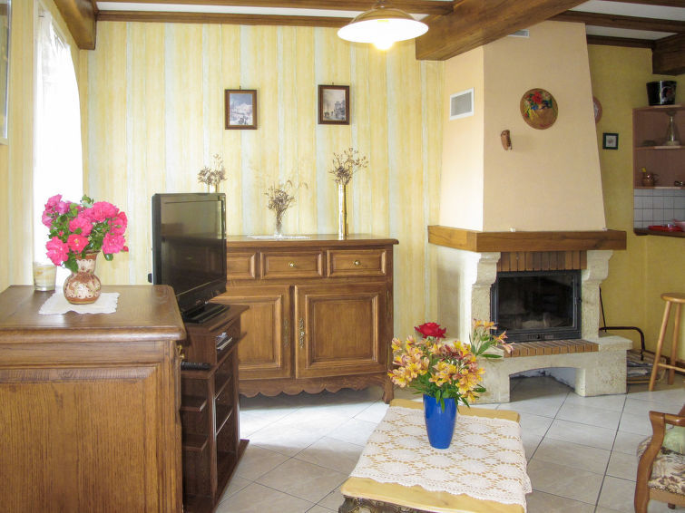 "Tytisa N°1 (BCT402)", 3-Zimmer-Doppelhaushälfte 85 m2 auf 2 Stockwerken. Rustikal und gemütlich eingerichtet: Wohn-/Esszimmer mit offenem Kamin, Esstisch und Sat-TV. Offene Küche (Backofen, Geschirrspüler, 4 Glaskeramikherd Platten, Toaster, Wasserkocher, Mikrowelle, elektrische Kaffeemaschine). Sep. WC. Obergeschoss: 1 abgeschrägtes Zimmer mit 1 franz. Bett. 1 abgeschrägtes Zimmer mit 1 Bett und 1 franz. Bett. Dusche/WC. E-Heizung. Parkettböden. Terrasse überdacht. Terrassenmöbel, Gartengrill (mobil). Sicht auf die Landschaft. Zur Verfügung: Waschmaschine, Bügeleisen, Kinderhochstuhl, Babybett. Internet (Wireless LAN, gratis). Bitte beachten: Rauchmelder.