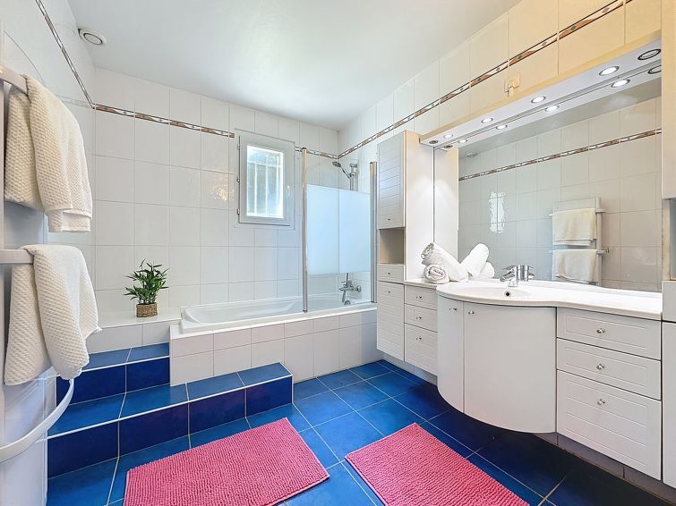 "Ma Petite Mer", 6-Zimmer-Haus 135 m2 auf 2 Stockwerken, Südostlage. Geräumig und hell, renoviert, modern und stilvoll eingerichtet: grosses Wohn-/Esszimmer mit offenem Kamin. Ausgang zur Terrasse, Richtung Süden und Richtung Osten. Salon mit TV (Flachbildschirm). Büro. 1 Zimmer mit 1 franz. Bett (1 x 140 cm, Länge 190 cm). Offene Küche (Backofen, Geschirrspüler, 3 Induktionskochplatten, Toaster, Wasserkocher, Tiefkühler, elektrische Kaffeemaschine, Kapseln für die Kaffeemaschine (Nespresso) extra). Bad, sep. WC. Obergeschoss: 2 Zimmer, jedes Zimmer mit 1 franz. Bett (1 x 140 cm, Länge 190 cm). 1 Kinderzimmer mit 1 x 2 Etagenbetten (90 cm, Länge 190 cm). Gepäckraum mit begehbarem Kleiderschrank. Dusche/WC. Grosse Terrasse 70 m2, Südlage und Ostlage. Terrassenmöbel, Gartengrill. Zur Verfügung: Waschmaschine, Wäschetrockner, Bügeleisen, Kinderhochstuhl, Babybett bis 2 Jahre, Haartrockner. Internet (WLAN, gratis). Parkplatz (eingezäunt, 3 Autos). E-Ladestation. Bitte beachten: Nichtraucher-Haus. Maximal 1 Haustier/Hund erlaubt. Rauchmelder. Inserat eines gewerblichen Vermieters nach Artikel 155, IV, CGI 44131001275F3