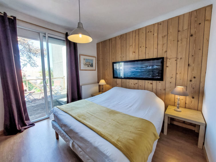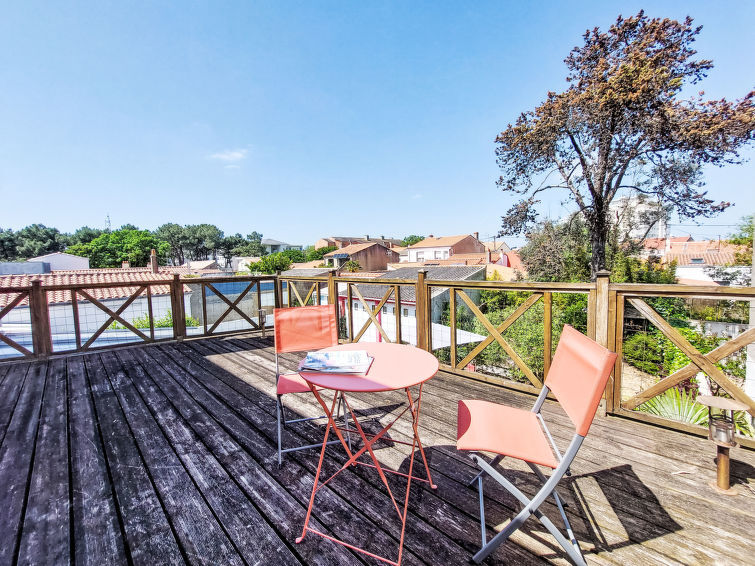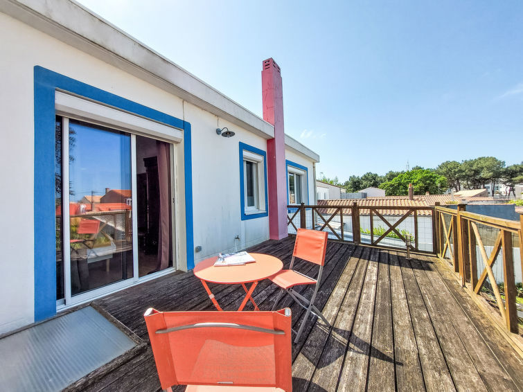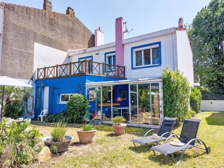 Grosses, komfortables Haus "Villa Salut l'Artiste". Im Ort, in einem Wohnquartier, 700 m vom Meer, 700 m vom Strand. Zur Alleinbenutzung: Garten 350 m2 (eingezäunt). Abstellraum vorhanden. Parkplatz (für 2 Autos) auf dem Grundstück. Lebensmittelgeschäft, Supermarkt 650 m, Restaurant 1 km, Bar 1 km, Bushaltestelle 200 m, Bahnstation "SNCF" 1.7 km, Park "des Roses" 300 m, Hallenbad 1.8 km, Thermalbad "et de Thalassothérapie" 1.8 km. Surfschule 1 km, Segelschule 1 km. Nahe gelegene Sehenswürdigkeiten: Marché Arago 900 m, Zoo 1.8 km, St Gilles Croix de Vie 30 km, Ile de Noirmoutier 65 m, Nantes 95 km. Wandergebiete: GR34. Der Besitzer akzeptiert keine Jugendgruppen. Ein Teil des Hauses ist geschlossen und nicht bewohnt.