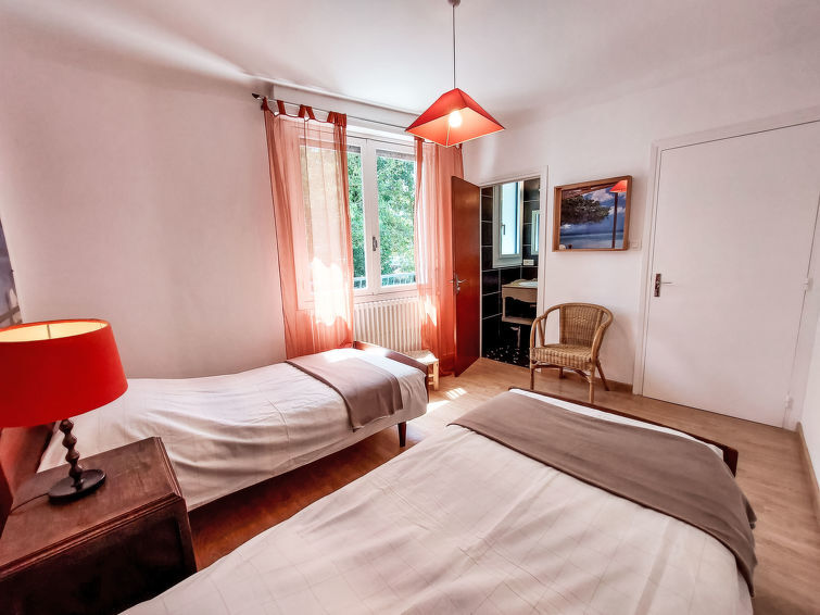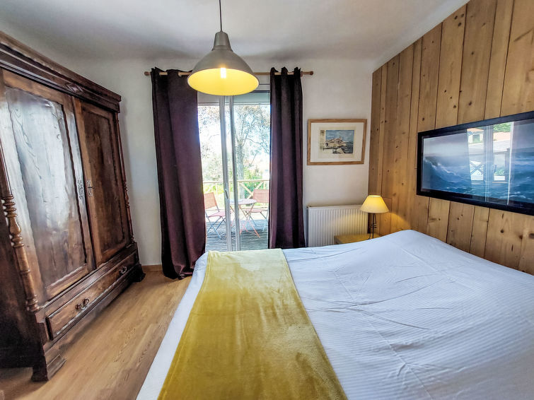 5-Zimmer-Reihenhaus 145 m2. Sehr schön eingerichtet: grosser Eingang. Ausgang zur Veranda. Grosses Wohn-/Esszimmer 45 m2 mit offenem Kamin (nur Deko), TV (Flachbildschirm). Ausgang zur Veranda. Offene Küche (Backofen, Geschirrspüler, 4 Flammen, Toaster, Wasserkocher, Mikrowelle, elektrische Kaffeemaschine) mit Esstisch. Ausgang zum Garten. Sep. WC. Obergeschoss: 1 grosses Zimmer mit 1 franz. Bett (160 cm, Länge 200 cm), Waschbecken und Dusche. Ausgang zum Balkon. 1 Zimmer mit 1 franz. Bett (160 cm, Länge 200 cm). Ausgang zur Terrasse. 1 grosses Zimmer mit 2 Betten (90 cm, Länge 190 cm), Waschbecken und Dusche. 1 Zimmer mit 1 franz. Bett (160 cm, Länge 200 cm). Bad/WC, Doppelwaschbecken. G-Heizung. Grosse Terrasse 16 m2. Terrassenmöbel, Gartengrill, Liegestühle. Zur Verfügung: Waschmaschine, Kinderhochstuhl, Babybett. Internet (WLAN). Bitte beachten: Nichtraucher-Haus. Maximal 1 Haustier/Hund erlaubt. Rauchmelder. Inserat einer Privatperson nach Artikel 155, IV, CGI. 85194001391EE