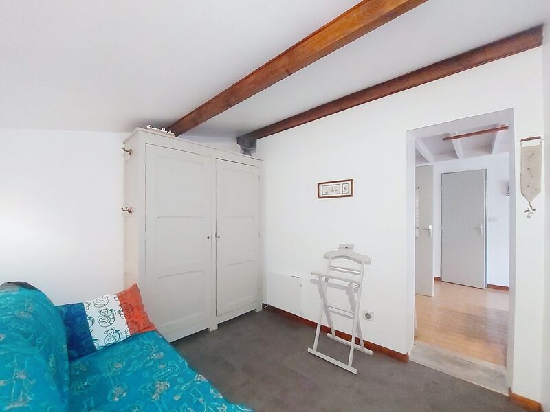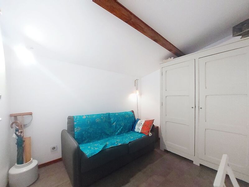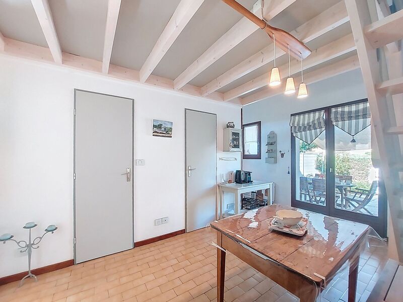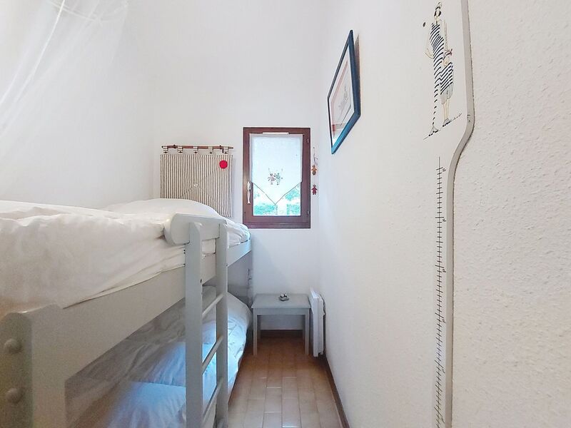 4-Zimmer-Reihenhaus 59 m2 auf 2 Stockwerken. Wohn-/Esszimmer. Ausgang zur Terrasse. 1 Zimmer mit 1 franz. Bett (1 x 140 cm, Länge 190 cm). 1 kleines Kinderzimmer mit 1 x 2 Etagenbetten (90 cm, Länge 190 cm). Durchgangszimmer, ohne Fenster mit 1 Doppeldiwanbett (1 x 140 cm, Länge 190 cm). Kochnische (2 Glaskeramikplatten, Toaster, Wasserkocher, Mikrowelle, elektrische Kaffeemaschine). Bad, sep. WC. E-Heizung. Obergeschoss: abgeschrägte Galerie mit TV (Flachbildschirm). Terrasse 15 m2, Gartensitzplatz 50 m2. Terrassenmöbel, Gartengrill. Zur Verfügung: Internet (WLAN, extra). Parkplatz Nr. 17. Bitte beachten: Nichtraucher-Unterkunft. 1 kleines Haustier/Hund erlaubt. Rauchmelder. Inserat einer Privatperson nach Artikel 155, IV, CGI.