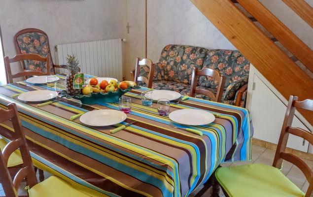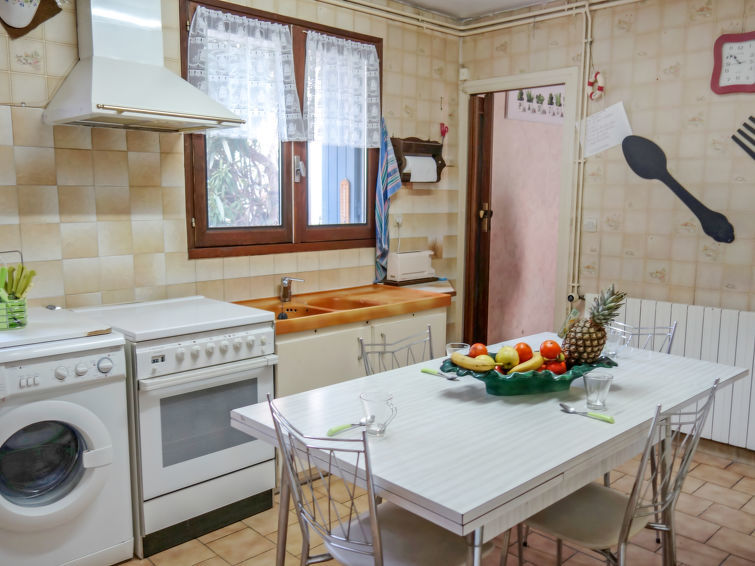 4-Zimmer-Reihenhaus 150 m2 auf 2 Stockwerken. Rustikal eingerichtet: Wohn-/Esszimmer mit TV. Küche (3 Kochplatten, Backofen, Geschirrspüler, Mikrowelle, Tiefkühler). Bad/WC. G-Heizung. Obergeschoss: 1 Zimmer mit 1 franz. Bett (140 cm). 1 Zimmer mit 1 Doppeldiwanbett (140 cm), 1 franz. Bett (130 cm). Durchgangszimmer mit 1 franz. Bett (130 cm). Verbundenes Zimmer mit 1 franz. Bett (140 cm), Waschbecken. Dusche/WC. Grosse Terrasse 80 m2. Terrassenmöbel. Zur Verfügung: Waschmaschine. Internet (Wireless LAN, gratis). Bitte beachten: Rauchmelder.
