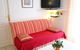 2-Zimmer-Wohnung 37 m2, im erhöhten Erdgeschoss. Schön eingerichtet: Wohn-/Esszimmer mit 1 Doppeldiwanbett (1 x 140 cm, Länge 190 cm), TV (Flachbildschirm). Ausgang zur Terrasse. 1 Zimmer mit 1 franz. Bett (1 x 140 cm, Länge 190 cm). Offene Küche (4 Kochplatten, Backofen, Tiefkühler, elektrische Kaffeemaschine, Kombinationsmikrowelle). Dusche, sep. WC. E-Heizung. Grosse Terrasse 40 m2, Ostlage und Südlage. Terrassenmöbel. Zur Verfügung: Waschmaschine, Bügeleisen. Internet (Wireless LAN, extra). Bitte beachten: Rauchmelder.