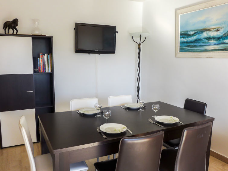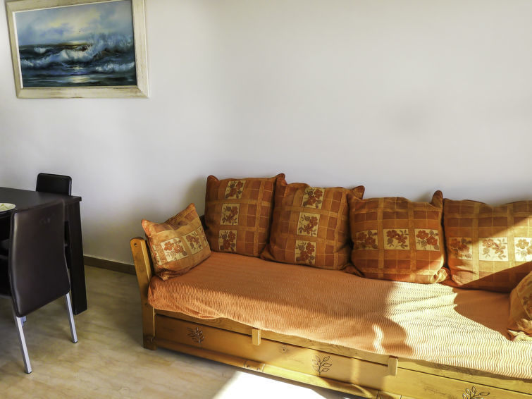 2-Zimmer-Wohnung 45 m2 im 1. Stock. Schön eingerichtet: Wohn-/Esszimmer mit 2 Ausziehbetten (2 Pers. 2 x 80 cm, Länge 220 cm), Flachbildschirm. Ausgang zum Balkon. 1 Zimmer mit 2 Betten (90 cm, Länge 190 cm). Küche (Backofen, 4 Glaskeramikherd Platten, Mikrowelle, Tiefkühler, elektrische Kaffeemaschine, Dampfgarer). Dusche/WC. Balkonmöbel. Seitliche Sicht auf das Meer. Zur Verfügung: Bügeleisen, Babybett bis 3 Jahre, Haartrockner. Internet (Wireless LAN, extra). Maximal 1 kleines Haustier/Hund erlaubt. 06027010912SB