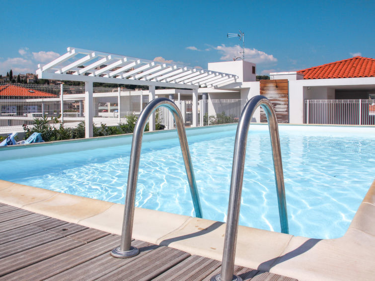 Residenz "Le Crystal", auf 6 Stockwerken. 79 Wohnungen in der Residenz. 500 m vom Zentrum von Cagnes-sur-Mer, 10 km vom Zentrum von Nice, 22 km vom Zentrum von Cannes, 1.5 km vom Meer. Zur Mitbenutzung: Schwimmbad eingezäunt (10 x 5 m, 150 cm tief, saisonale Verfügbarkeit: 01.Apr.-30.Sep.). WC im Poolbereich, Aussendusche, Tischtennis. In der Anlage: Empfang, Wireless LAN, Tischfussball, Fahrstuhl, Waschmaschine, Wäschetrockner (zur Mitbenutzung, extra). Gemeinschaftsgarage. Einkaufsgeschäft 100 m, Kieselstrand 1.5 km. Bitte beachten: Das Foto ist nur ein Hausbeispiel. Die Mietobjekte können sich in Wohnfläche, Raumaufteilung, Ausstattung und Einrichtung unterscheiden.