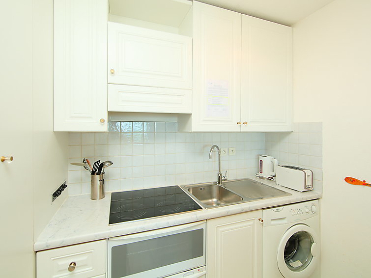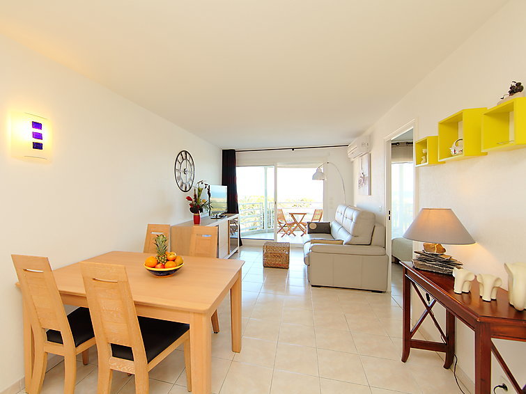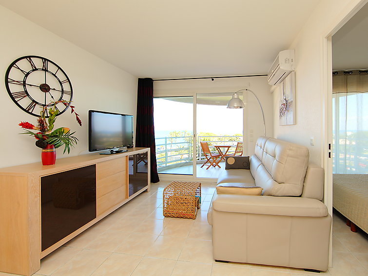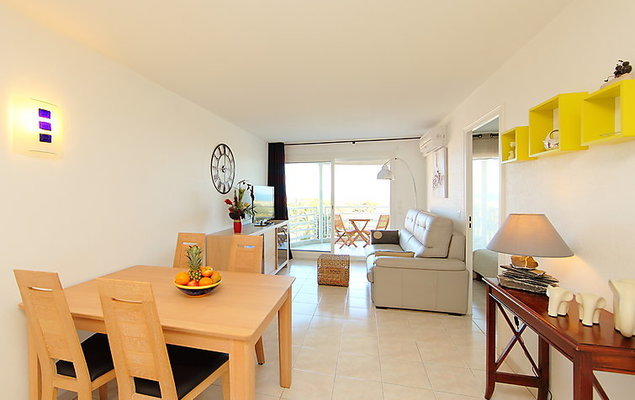 2-Zimmer-Wohnung 43 m2 im 4. Stock, Südlage. Hell, schön eingerichtet: Wohn-/Esszimmer mit Panoramafenster mit 1 Doppeldiwanbett (140 cm, Länge 190 cm), Flachbildschirm, Klimaanlage und elektrischem Rollladen. Ausgang zur Terrasse. 1 Zimmer mit 2 Betten (80 cm, Länge 200 cm), Flachbildschirm. Ausgang zur Terrasse. Offene Küche (4 Kochplatten, Geschirrspüler, Toaster, Wasserkocher, Mikrowelle, Tiefkühler, elektrische Kaffeemaschine). Dusche/WC. Terrasse 15 m2, Südlage. Terrassenmöbel. Schöne Sicht auf das Meer und die Ortschaft. Zur Verfügung: Waschmaschine, Bügeleisen, Haartrockner. Internet (Wireless LAN, extra). Garage Nr. 15 (1 Auto), Höhe 180 cm, Breite 210 cm. Bitte beachten: Nichtraucher-Unterkunft. Rauchmelder. 06088000833TG