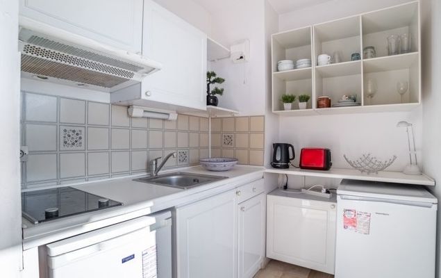 "Zénith 2", 3-Zimmer-Wohnung 68 m2 im 3. Stock. Schön und modern eingerichtet: Esszimmer mit 1 Diwanbett (140 cm, Länge 190 cm). Ausgang zur Terrasse. Wohnzimmer mit 1 Diwanbett (90 cm, Länge 190 cm), Klimaanlage. Ausgang zur Terrasse. 1 Zimmer mit 1 Doppelbett (2 x 90 cm, Länge 200 cm), Sitzbad/WC und Klimaanlage. Offene Küche (2 Glaskeramikherd Platten, Toaster, Wasserkocher, elektrische Kaffeemaschine, Kapseln für die Kaffeemaschine (Nespresso) extra, Kombinationsmikrowelle). Ausgang zur Terrasse. Dusche/WC. Grosse Terrasse 15 m2. Terrassenmöbel. Herrliche Sicht auf das Meer. Zur Verfügung: Waschmaschine, Bügeleisen, Haartrockner. Internet (Wireless LAN, gratis). Garage (1 Auto). Bitte beachten: Nichtraucher-Unterkunft. 1 Haustier/Hund erlaubt. Rauchmelder. 06088022530SB
