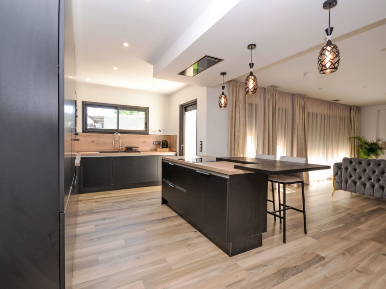 4-Zimmer-Villa 132 m2 auf 2 Stockwerken. Schön und modern eingerichtet: Wohn-/Esszimmer 70 m2 mit Esstisch und TV (Flachbildschirm). Ausgang zum Garten. Offene Küche (Backofen, 3 Induktionskochplatten, Toaster, Wasserkocher, Mikrowelle, Tiefkühler, elektrische Kaffeemaschine). Sep. WC. Obergeschoss: 1 Zimmer mit 1 franz. Bett (180 cm, Länge 200 cm), Dusche. Ausgang zum Balkon. 1 Zimmer mit 2 Betten (90 cm, Länge 190 cm). 1 Zimmer mit 1 franz. Bett (180 cm, Länge 200 cm). Bad, sep. WC, Doppelwaschbecken. Klimaanlage. Terrasse. Terrassenmöbel, Gartengrill (mobil), Liegestühle (2). Zur Verfügung: Waschmaschine, Bügeleisen, Babybett bis 2 Jahre. Internet (WLAN, gratis). Bitte beachten: geeignet für Familien. Nichtraucher-Haus. Rauchmelder. Inserat einer Privatperson nach Artikel 155, IV, CGI.