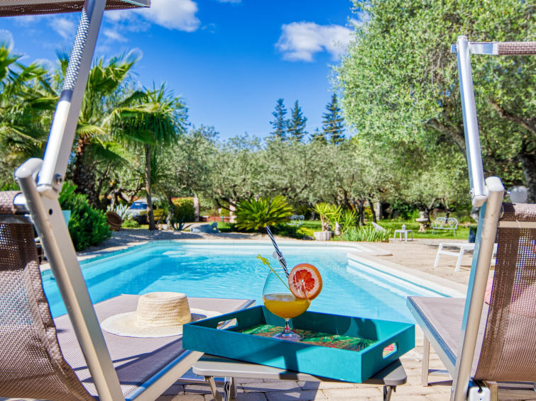 "L'Oliveraie", 4-Zimmer-Villa 140 m2. Komfortabel eingerichtet: Wohn-/Esszimmer mit TV. Ausgang zur Terrasse. 1 Zimmer mit 1 franz. Bett (160 cm, Länge 200 cm), Dusche und Klimaanlage. Ausgang zum Garten. 1 Zimmer mit 1 franz. Bett (140 cm, Länge 190 cm), Klimaanlage. Ausgang zur Terrasse. 1 Zimmer mit 1 Bett (90 cm, Länge 190 cm), 1 franz. Bett (120 cm, Länge 190 cm), Klimaanlage. Offene Küche (Backofen, Geschirrspüler, 3 Glaskeramikplatten, Toaster, Wasserkocher, elektrische Kaffeemaschine) mit Bar. Sep. WC, Bad/Dusche/Bidet/WC. Fussbodenheizung. Terrassenmöbel, Gartengrill (mobil), Liegestühle (4). Zur Verfügung: Waschmaschine, Bügeleisen, Babybett bis 3 Jahre. Internet (WLAN, gratis). Bitte beachten: Nichtraucher-Haus. Maximal 1 Haustier/Hund erlaubt. Rauchmelder. Inserat einer Privatperson nach Artikel 155, IV, CGI.