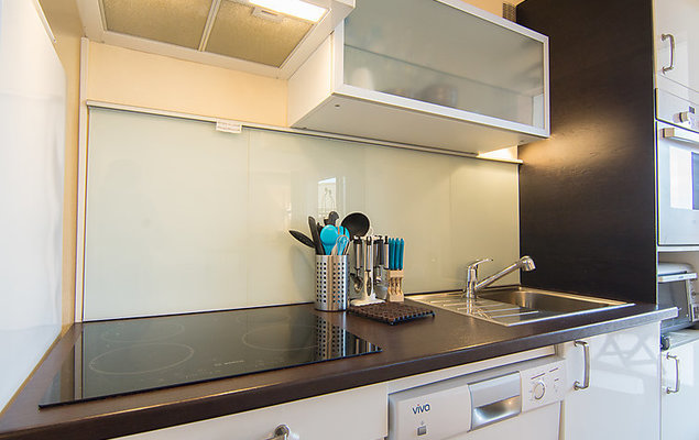 2-Zimmer-Wohnung 40 m2 im 3. Stock. Vollständig renoviert im Jahre 2016, zweckmässig und komfortabel eingerichtet: Wohn-/Esszimmer mit 1 Doppeldiwanbett, TV, Flachbildschirm und Klimaanlage. Ausgang zur Terrasse. 1 Zimmer mit 1 franz. Bett. Offene Küche (Backofen, Geschirrspüler, 3 Glaskeramikherd Platten, Toaster, Wasserkocher, Mikrowelle, elektrische Kaffeemaschine). Bad/WC. E-Heizung, Klimaanlage. Terrasse 14 m2, überdacht. Terrassenmöbel, Gartengrill. Eingeschränkte Sicht auf das Meer. Zur Verfügung: Waschmaschine, Bügeleisen. Internet (Wireless LAN, extra). Parkplatz (extra) beim Haus. Bitte beachten: Rauchmelder.