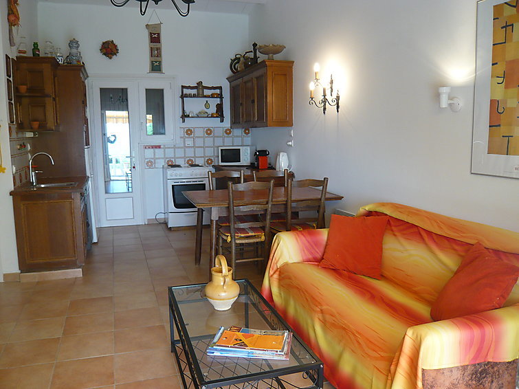 3-Zimmer-Reihenhaus 57 m2, Südostlage. Zweckmässig und schön eingerichtet: Wohn-/Esszimmer mit offenem Kamin und TV. Ausgang zur Terrasse. 1 Zimmer mit 1 Doppelbett (2 x 90 cm, Länge 200 cm). Ausgang zum Garten. 1 Zimmer mit 1 Bett (90 cm, Länge 190 cm), 1 Doppelbett (2 x 90 cm, Länge 190 cm). Ausgang zur Terrasse. Offene Küche (4 Kochplatten, Backofen, Geschirrspüler, Toaster, Wasserkocher, Mikrowelle, elektrische Kaffeemaschine, Kapseln für die Kaffeemaschine (Nespresso) extra). Dusche/WC, sep. WC. E-Heizung. Grosse Terrasse 60 m2, Gartensitzplatz 13 m2. Terrassenmöbel, Liegestühle (2). Panoramasicht auf das Meer und die Landschaft. Zur Verfügung: Waschmaschine, Bügeleisen, Haartrockner. Internet (Wireless LAN, extra). Parkplatz (2 Autos) beim Haus. Bitte beachten: Nichtraucher-Haus. Rauchmelder. Es handelt sich um ein einseitig angebautes Reihenhaus.