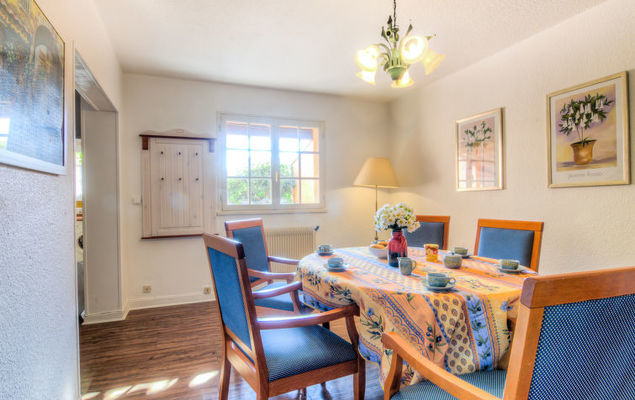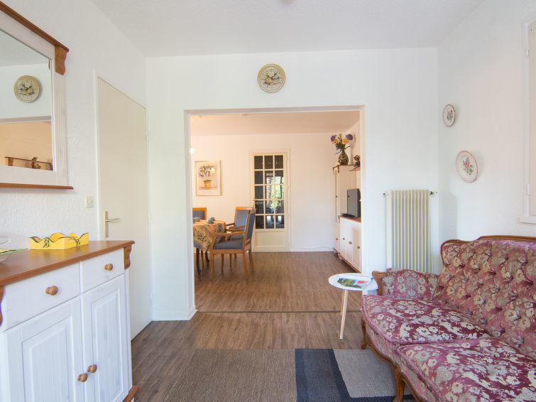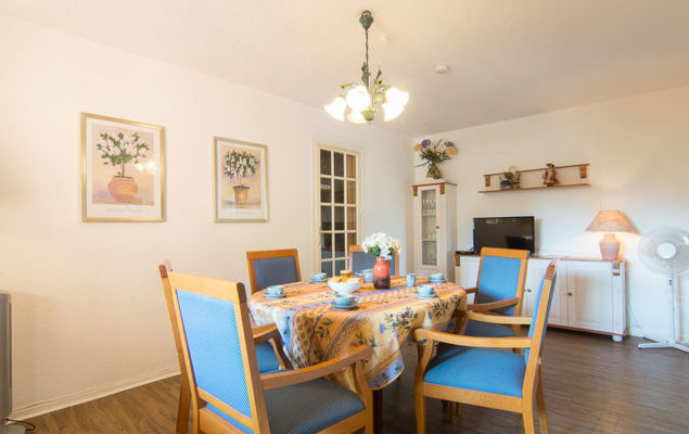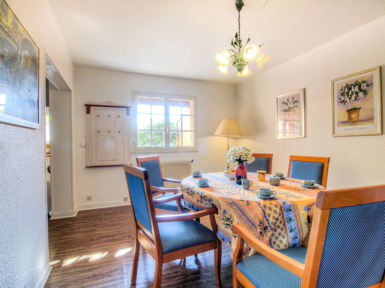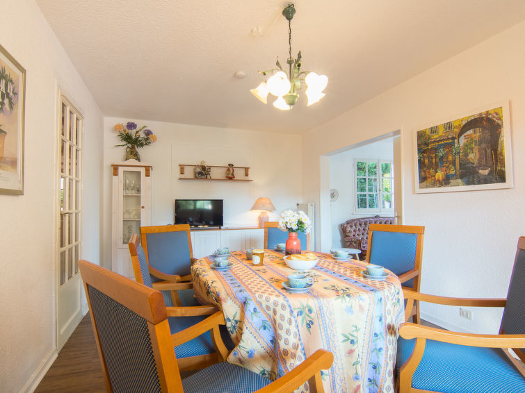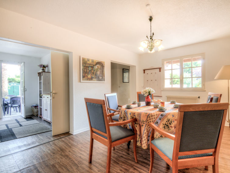 4-Zimmer-Haus 100 m2 auf 2 Stockwerken. Wohn-/Esszimmer mit TV. Ausgang zum Garten, Richtung Nordwesten. Küche (Backofen, Geschirrspüler, 4 Glaskeramikherd Platten, Toaster, Mikrowelle, Tiefkühler, elektrische Kaffeemaschine). Sep. WC. Obergeschoss: 1 Zimmer mit 1 franz. Bett (2 x 90 cm, Länge 190 cm). 1 Zimmer mit 1 franz. Bett (140 cm, Länge 190 cm). 1 Zimmer mit 1 franz. Bett (140 cm, Länge 190 cm). Dusche/WC. G-Heizung. Garten 500 m2. Terrassenmöbel. Zur Verfügung: Waschmaschine, Wäschetrockner, Bügeleisen. Internet (Wireless LAN, extra). Parkplatz. Bitte beachten: Rauchmelder.