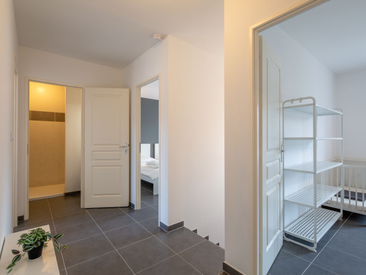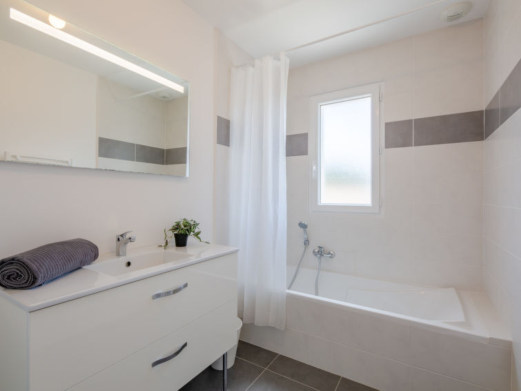 5-Zimmer-Reihenhaus 120 m2 auf 2 Stockwerken, Südwestlage. Geräumig und hell, komfortabel und schön eingerichtet: Eingang mit sep. WC. Grosses Wohn-/Esszimmer. Ausgang zur Terrasse, zum Schwimmbad. Grosse, offene Küche (Backofen, Geschirrspüler, 3 Induktionskochplatten, Toaster, Wasserkocher, Tiefkühler, elektrische Kaffeemaschine, Kombinationsmikrowelle). Obergeschoss: 2 Zimmer, jedes Zimmer mit 1 franz. Bett (1 x 160 cm, Länge 200 cm). Ausgang zum Balkon. 2 Zimmer, jedes Zimmer mit 2 Betten (90 cm, Länge 200 cm), Dusche. Bad, sep. WC. Klimaanlage. Balkon 18 m2, Terrasse 18 m2, überdacht. Terrassenmöbel, Gartengrill, Liegestühle (6). Zur Verfügung: Waschmaschine, Wäschetrockner, Babybett. Internet (Wireless LAN, gratis). Parkplatz Nr. F, Garage beim Haus. Bitte beachten: Nichtraucher-Haus. Rauchmelder. Inserat eines gewerblichen Vermieters nach Artikel 155, IV, CGI 83107000658FI