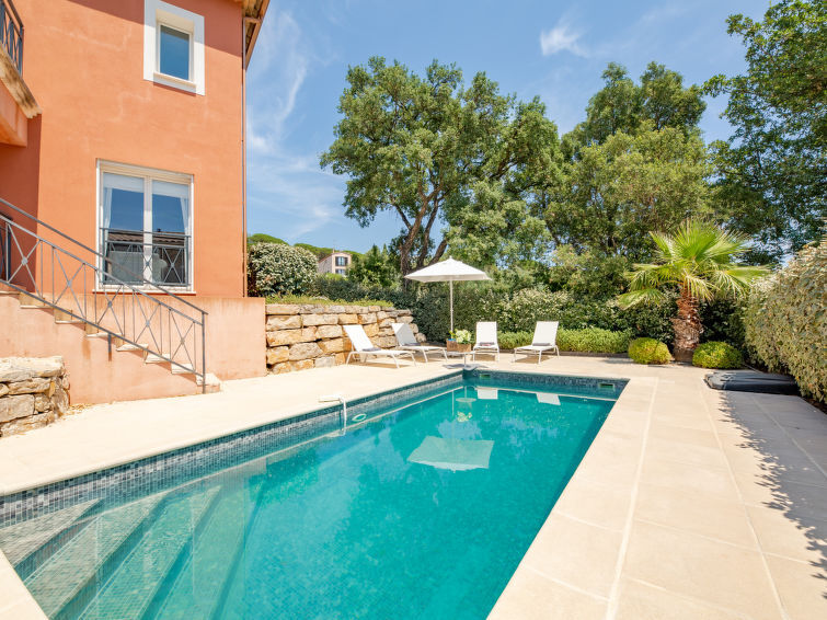 Schönes Reihenhaus "Villa de Stephanie", auf 2 Stockwerken. Am Ortsrand, 1.8 km vom Zentrum von San Peire Les Issambres, ruhige, sonnige Lage in einem Wohnquartier, 850 m vom Meer, 850 m vom Strand, Richtung Südwesten. Zur Alleinbenutzung: Grundstück 450 m2, Garten (nicht eingezäunt), Schwimmbad eckig (3 x 6 m, 150 - 150 cm tief, saisonale Verfügbarkeit: 01.Jun. - 30.Sep.) mit Innentreppe und Alarmanlage. Supermarkt 1.1 km, Restaurant 800 m, Zentrum zu Fuss in 20 Minuten erreichbar, Bushaltestelle 700 m, Bahnstation "Saint Raphael TGV" 18 km, Sandstrand "La Garonnette" 850 m, Thermalbad "Thalasso Spa des Issambres" 1.8 km. Sporthafen 1.5 km, Golfplatz (18 Loch) 10 km, Tennis 4 km. Nahe gelegene Sehenswürdigkeiten: Navette/Shuttle Boat St Tropez 20min 1.5 km, Sainte-Maxime 8 km, Saint-Tropez/Ramatuelle 23 km, Port-Grimaud 16 km, Gorges du Verdon 80 km. Wandergebiete: Massif des Maures 2 km, Massif de l'Esterel 20 km. Die Residenz wird durch elektrische Tore geschlossen. Die Schlüsselübergabe findet bei der Agentur INTERHOME in Sainte Maxime statt, 8 km.
