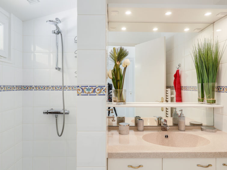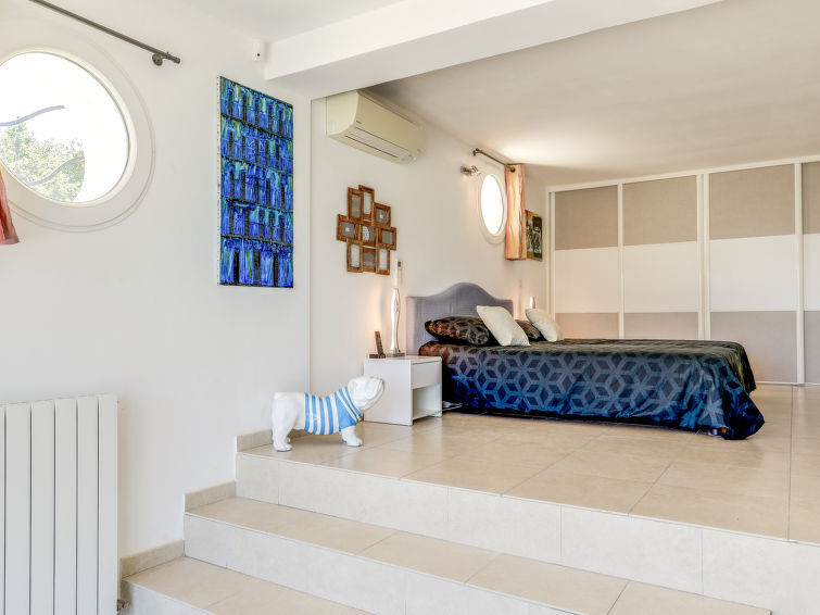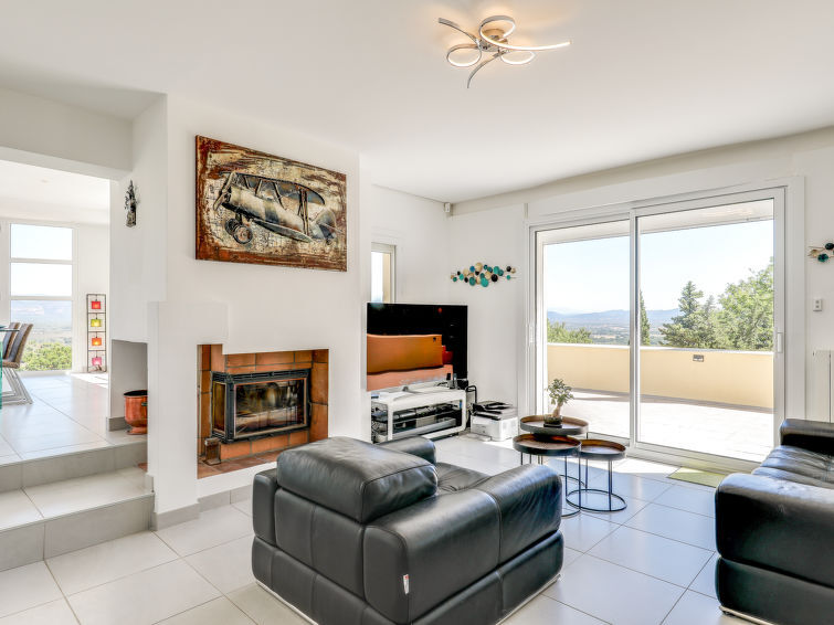 7-Zimmer-Haus 300 m2 auf 2 Stockwerken. Komfortabel und modern eingerichtet: Eingang mit Dusche/WC. Salon mit TV (Flachbildschirm), Klimaanlage. Ausgang zur Terrasse. Grosses Wohn-/Esszimmer mit Panoramafenster mit Klimaanlage. Ausgang zur Terrasse, zum Schwimmbad. Offene Küche (Backofen, Geschirrspüler, 4 Induktionskochplatten, Mikrowelle, Tiefkühler, elektrische Kaffeemaschine). Ausgang zum Schwimmbad. Unteres Geschoss: 1 grosses Zimmer mit begehbarem Kleiderschrank mit 1 franz. Bett (1 x 180 cm, Länge 200 cm), Bad, sep. WC, Bad/Dusche, Doppelwaschbecken, Sprudelbad und Klimaanlage. Ausgang zum Garten. 1 Zimmer mit 1 franz. Bett (1 x 160 cm, Länge 200 cm), TV (Flachbildschirm). 1 Zimmer mit 1 franz. Bett (1 x 140 cm, Länge 200 cm), Waschbecken. Ausgang zur Terrasse, zum Schwimmbad. Dusche/WC. Heizung. Terrasse 100 m2, Südwestlage Terrasse 70 m2, Ostlage, Garten. Terrassenmöbel, Gartengrill, Liegestühle (6). Sehr schöne Panoramasicht auf die Landschaft und den Wald. Zur Verfügung: Waschmaschine, Wäschetrockner, Bügeleisen, Haartrockner. Internet (WLAN, gratis). Parkplatz (eingezäunt, 4 Autos). Bitte beachten: für Kleinkinder nicht geeignet. Maximal 1 Haustier/Hund erlaubt. Rauchmelder. Nebengebäude (Zugang über Aussentreppe): 1 Schlafzimmer mit 1 Doppelbett (180x200), Klimaanlage. 1 Zimmer mit 2 Betten (2x 90x200), Klimaanlage. Bad/separates WC. 8310700023358