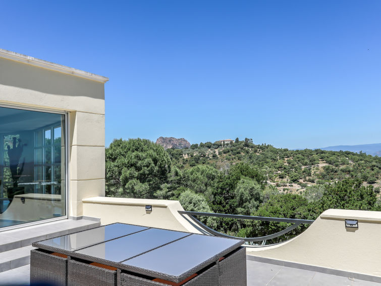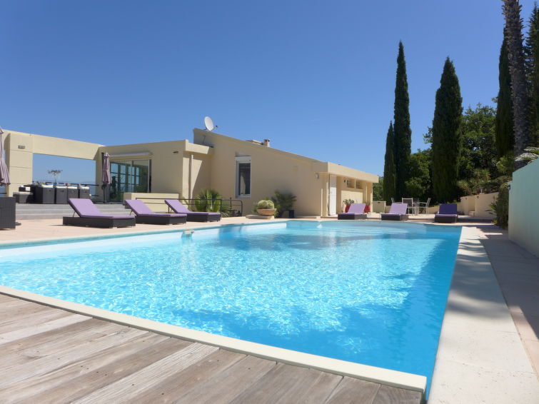 Modernes Einfamilienhaus "Les Toscanes", auf 2 Stockwerken, umgeben von Bäumen. Mietobjekt bestehend aus Haupt- und Nebengebäude, ausserhalb des Ortes Roquebrune sur Argens, ruhige, sonnige, erhöhte Lage auf einem Hügel, in einem Wohnquartier, verkehrsberuhigte Zone, im Grünen. Zur Alleinbenutzung: Naturgarten 1 ha (eingezäunt), Schwimmbad eckig, beheizt, nicht einsehbar (12 x 6 m, 60 - 170 cm tief, saisonale Verfügbarkeit: 15.Mai. - 15.Okt.) mit Rollladenabdeckung und Alarmanlage. Aussendusche, Poolhaus, Terrasse (170 m2), Grill. Im Hause: Alarmanlage. Wohnungsreinigung 1 mal wöchentlich möglich (extra). Einkaufsgeschäft 3 km, Bushaltestelle "Roquebrune Village" 2 km, Bahnstation "Fréjus" 20 km, Sandstrand "Plage de Saint Aygulf" 15 km, Kieselstrand "Calanque des Louvans" 14 km, Park "Areca" 14 km, Thermalbad "Thalasso de Port Fréjus" 20 km, See Lac de l'Arèna 3 km. Jacht-Hafen 15 km, Golfplatz (18 Loch) 10 km, Segelschule 15 km, Reitstall 7 km, Sportzentrum 4 km, Wanderwege ab Haus 100 m. Nahe gelegene Sehenswürdigkeiten: Base Nature du Rocher 4 km, Roquebrune sur Argens 3 km, Saint Aygulf 15 km, Aqualand, Luna park 20 km, Sainte Maxime 24 km, Saint Tropez 40 km. Bekannte Skigebiete sind gut erreichbar: Auron, Isola 2000 155 km. Bekannte Seen in der Umgebung sind gut erreichbar: Lac de St Cassien 50 km, Lac du Du Verdon 95 km. Wandergebiete: Col de Valdingarde 5 km, Estérel 25 km. Bitte beachten: Fahrzeug empfohlen. Für Kleinkinder nicht geeignet. Der Besitzer akzeptiert keine Jugendgruppen. Die Residenz wird durch elektrische Tore geschlossen. Dieses Haus besteht aus zwei Gebäuden (Zugang von aussen), insgesamt 5 Zimmer – 2 Schlafzimmer und 1 Badezimmer im Nebengebäude. Bei einem Aufenthalt ab 14 Nächten wird vom Eigentümer eine Reinigung, in der Mitte des Aufenthalts, angeboten (Aufpreis).