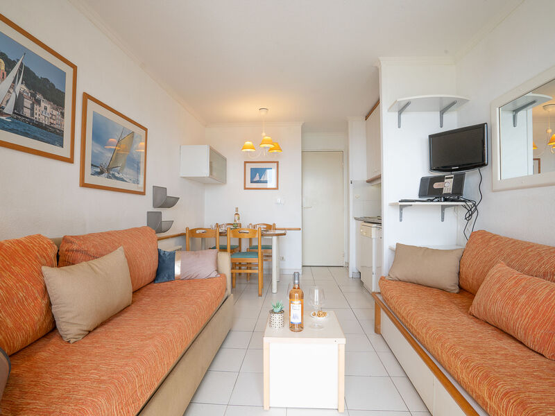 "Le Belvédère(R3 221)", 1-Zimmer-Studio 28 m2. Objekt geeignet für 2 Erwachsene + 2 Kinder. Wohnzimmer mit 1 Ausziehbett (2 x 80 cm, Länge 190 cm), TV (Flachbildschirm), CD. Ausgang zur Terrasse. Kabine mit 1 x 2 Etagenbetten (80 cm, Länge 190 cm). Kochnische (4 Kochplatten, Geschirrspüler, Toaster, Wasserkocher, Mikrowelle, elektrische Kaffeemaschine). Bad, sep. WC. E-Heizung. Terrasse 8 m2. Terrassenmöbel. Schöne Sicht auf das Meer. Zur Verfügung: Internet (WLAN, extra). Parkplatz (1 Auto). Bitte beachten: Nichtraucher-Unterkunft. Rauchmelder. Anstelle eines abgeschlossenen Schlafzimmers befinden sich manche Schlafplätze in einem offenen Bereich (Galerie, Nische etc.). Inserat einer Privatperson nach Artikel 155, IV, CGI.